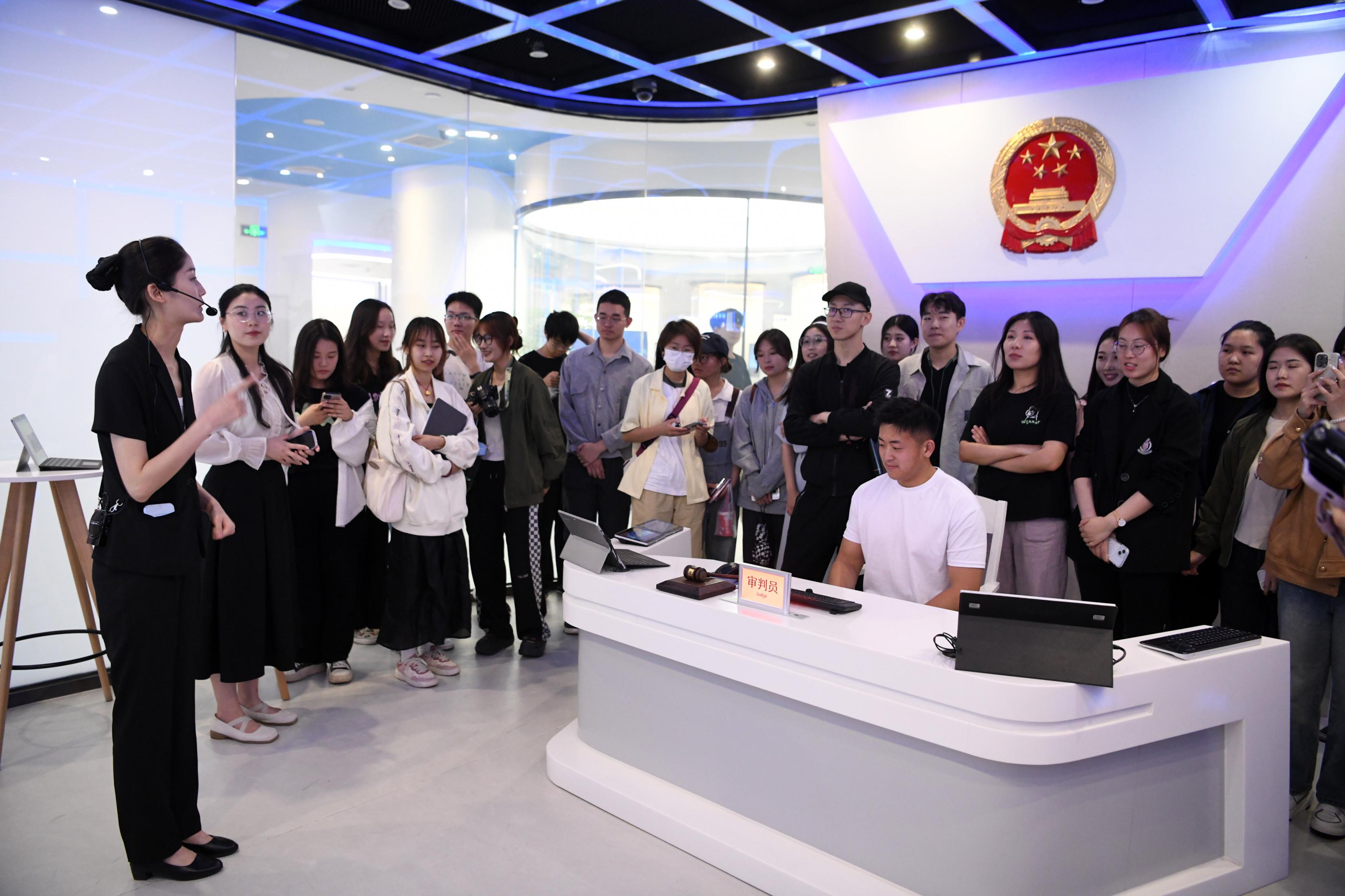 學(xué)生還參觀了在線訴訟體驗(yàn)區(qū),了解第一代網(wǎng)絡(luò)法庭、人工智能法官等在線訴訟的新技術(shù)、新方法。他們還在新型法官辦公區(qū),體驗(yàn)虛擬法庭艙。“現(xiàn)在,原告、被告和法官不用見面,就能完成一場(chǎng)庭審。”中央民大法學(xué)院大一學(xué)生金涵鈺說,科技為司法工作創(chuàng)造了便捷和高效的條件。