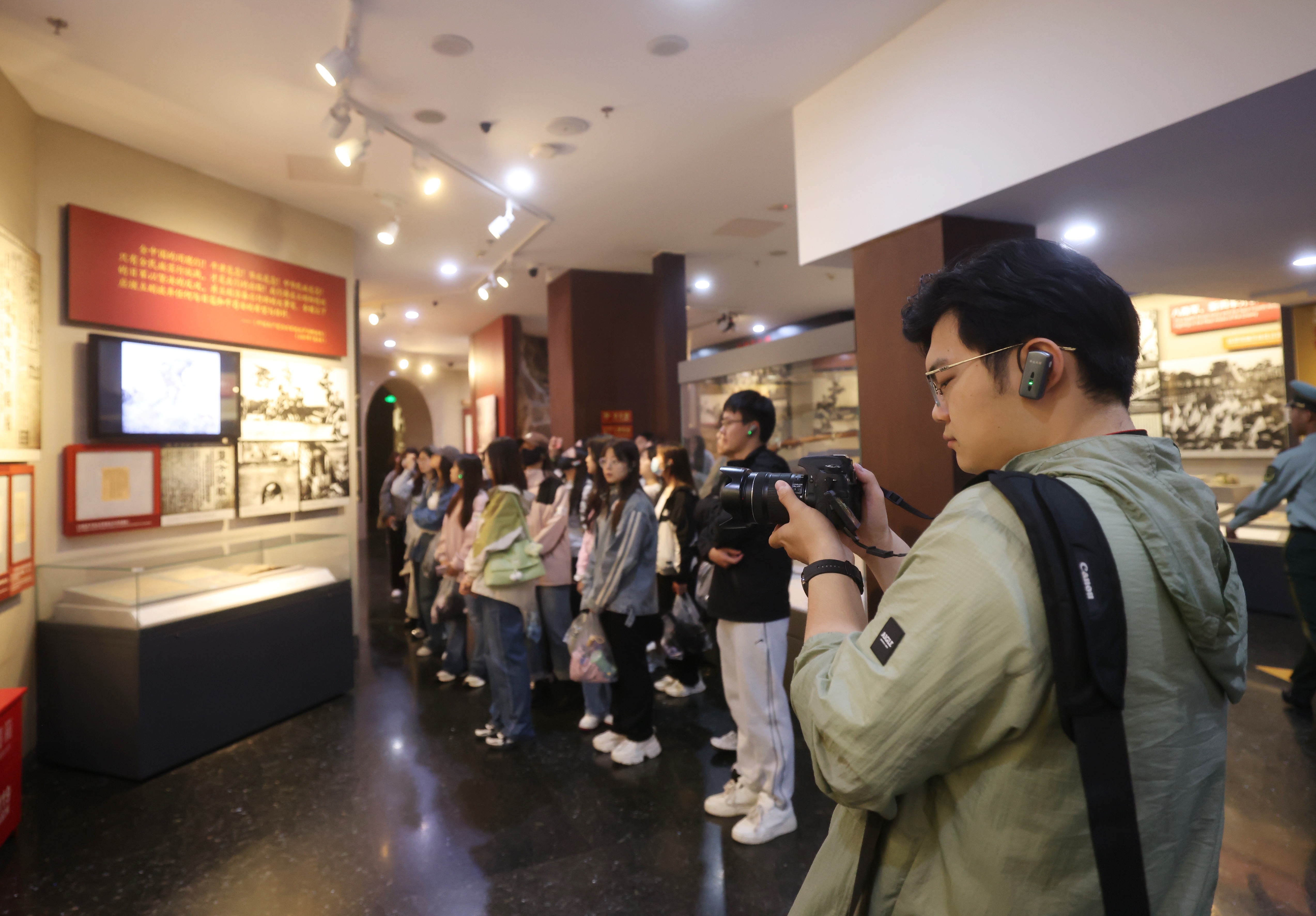 5月25日,參加“青春拍客秀”紅色記憶主題拍攝活動(dòng)的大學(xué)生們參觀中國(guó)人民抗日戰(zhàn)爭(zhēng)紀(jì)念館。 新京報(bào)記者 王貴彬 攝