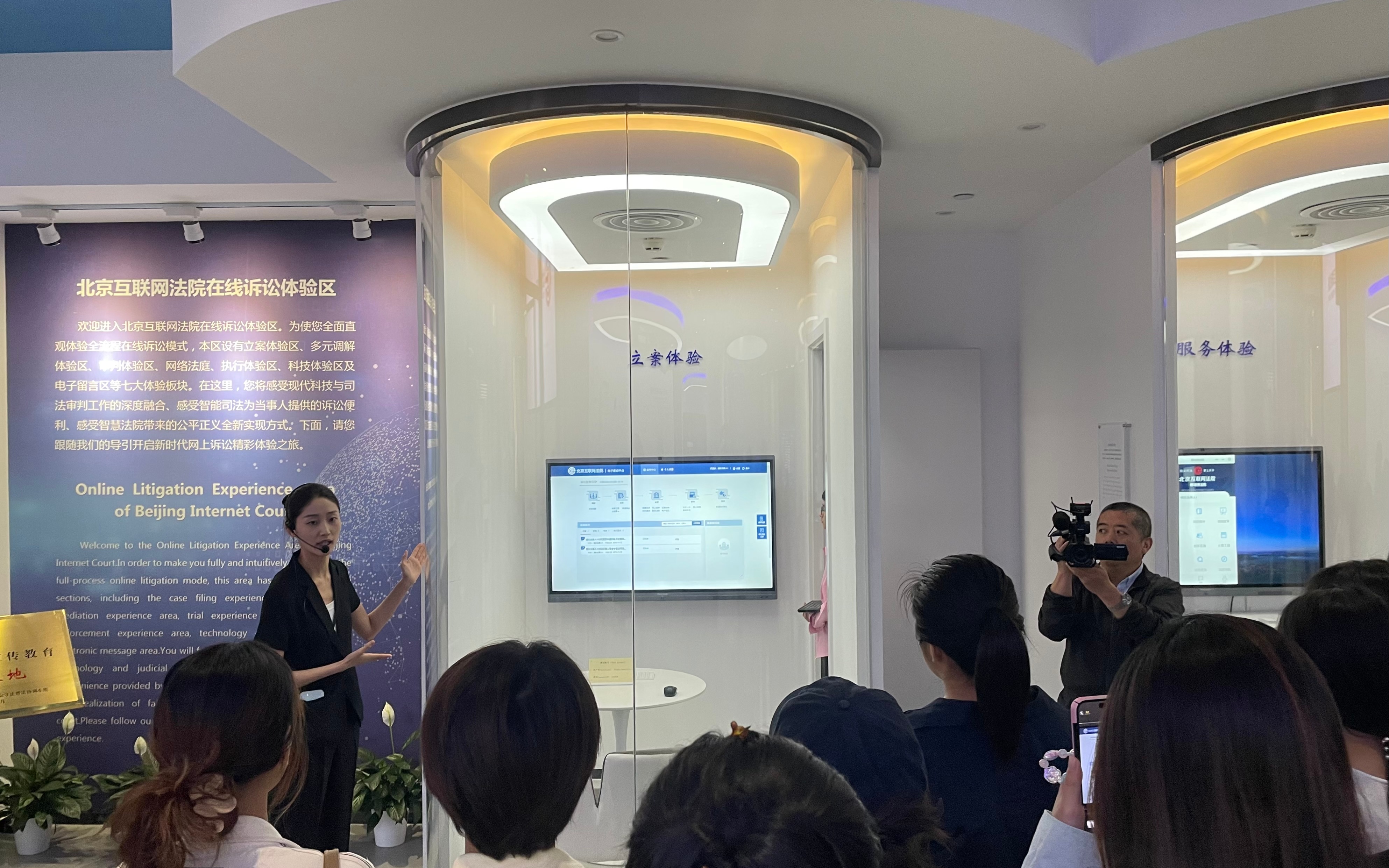 5月24日,中央民族大學和北京工商大學的法學生們走進北京互聯網法院,聽取工作人員的講解介紹,實地參觀互聯網審判法庭,了解版權保護。