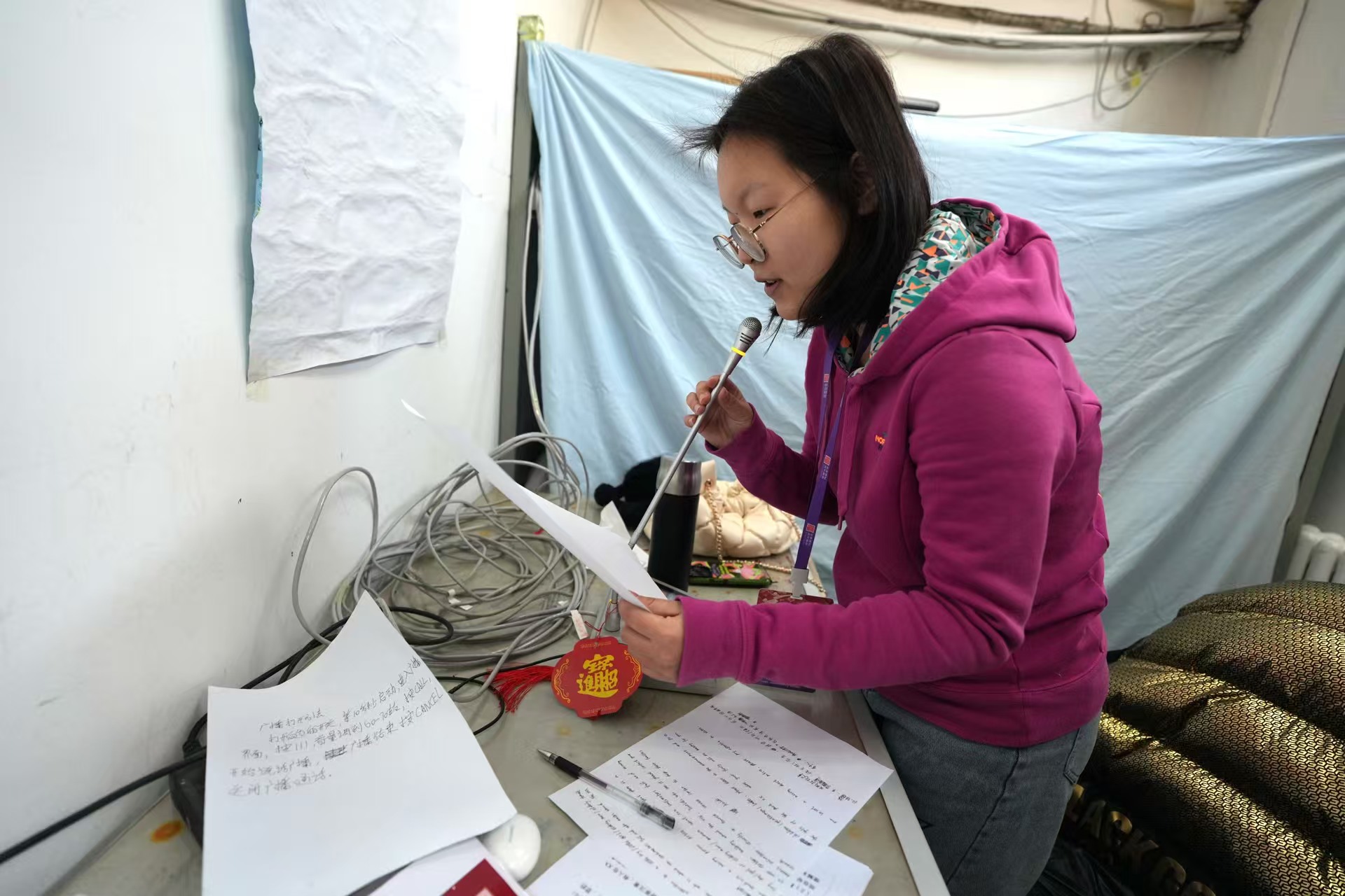 春節(jié)假期,賈雨涵天天“上班”。每天廟會開門前,她就會走進地壇公園廣播室,為當天的工作做準備。屋子里,一張桌子、一支話筒,還有一張密密麻麻寫著各類廣播注意事項的紙。