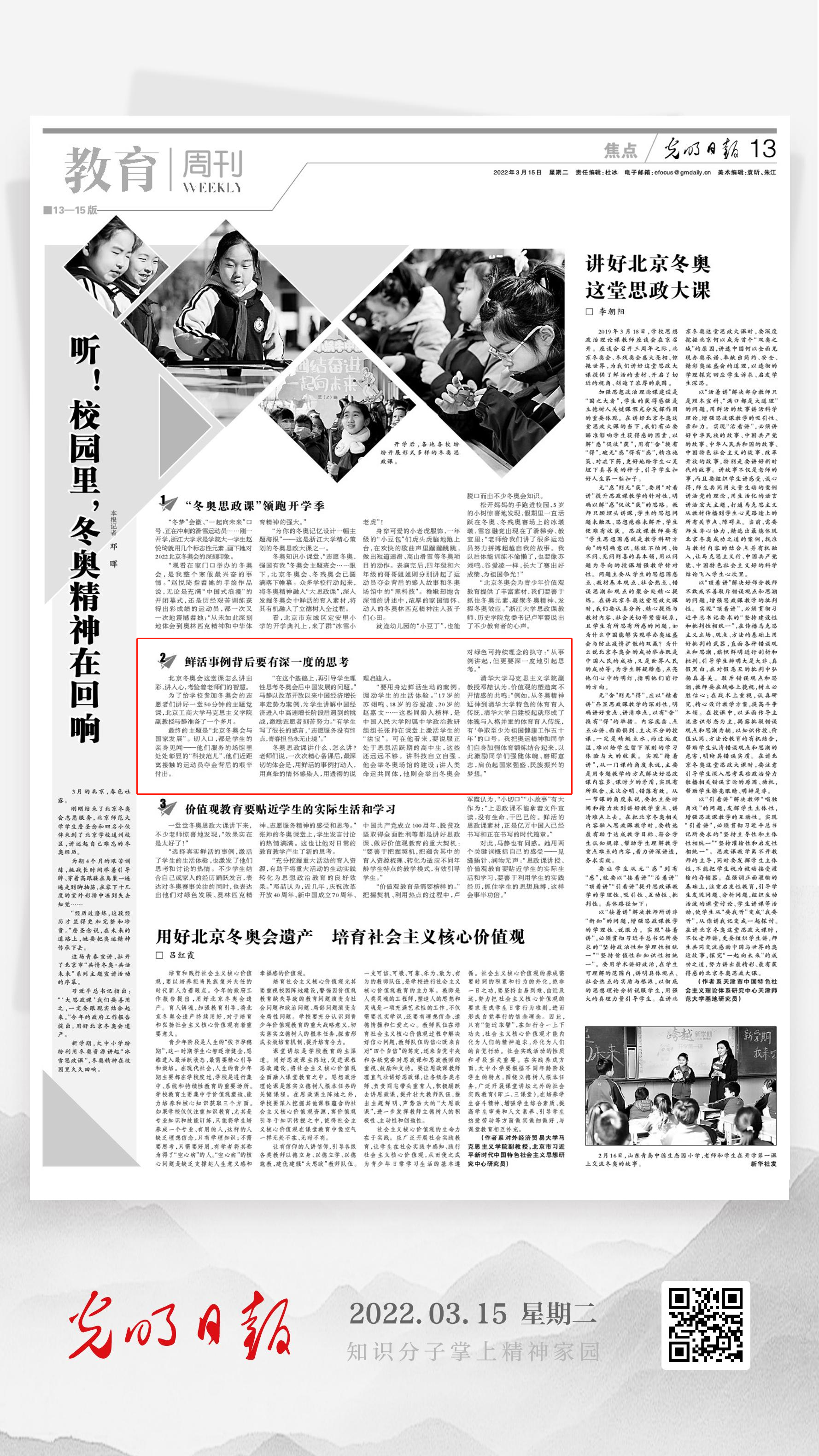 習近平總書記指出:“‘大思政課’我們要善用之,一定要跟現實結合起來。”今年的政府工作報告提出,用好北京冬奧會遺產。