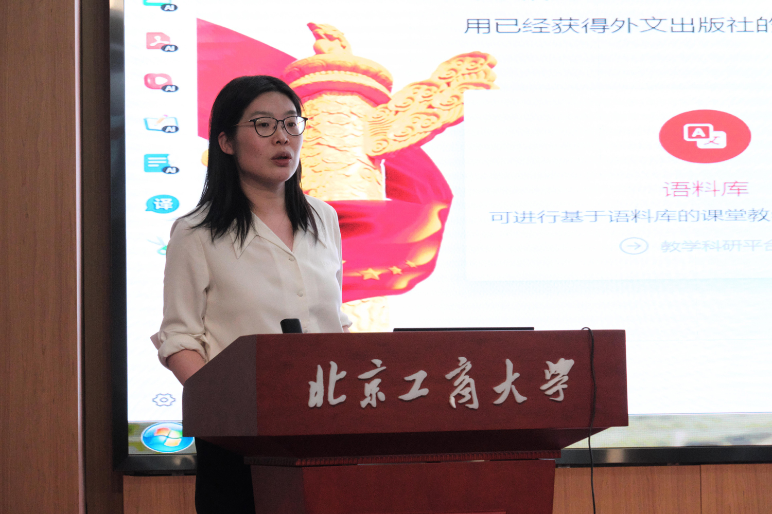 在主旨發(fā)言環(huán)節(jié),語言與傳播學(xué)院關(guān)濤副教授以“《習(xí)近平談治國理政》多語種數(shù)據(jù)庫綜合平臺助力大學(xué)英語課程思政——以北京工商大學(xué)為例”為題進(jìn)行匯報(bào)。吳濛副教授以“《習(xí)近平談治國理政》多語種數(shù)據(jù)庫綜合平臺在大學(xué)英語‘三進(jìn)’工作中的實(shí)踐路徑探索”為題進(jìn)行匯報(bào)。劉思含老師進(jìn)行“語料庫賦能筆譯課程思政教學(xué)一以扶貧主題翻譯為例”的匯報(bào)。苗天順副教授進(jìn)行“人工智能賦能外語課程思政構(gòu)建”的匯報(bào)。胡開寶教授對4位教師的匯報(bào)分享作點(diǎn)評發(fā)言,他充分肯定了語言與傳播學(xué)院英語教學(xué)的探索實(shí)踐,并對語料庫助力教學(xué)科研的未來作出了規(guī)劃指導(dǎo)。