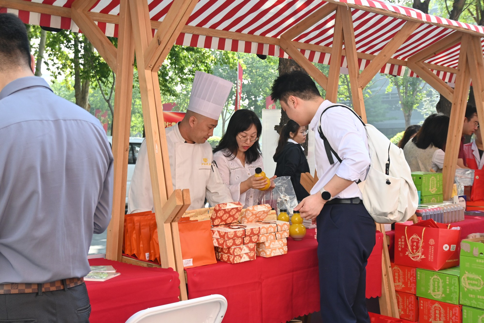 北京北冰洋、一輕食品、同仁堂健康藥業等單位帶來優質產品展示與優惠售賣,涵蓋食品、飲品、健康產品等,讓師生足不出校就能享受聯建單位的優質服務。
