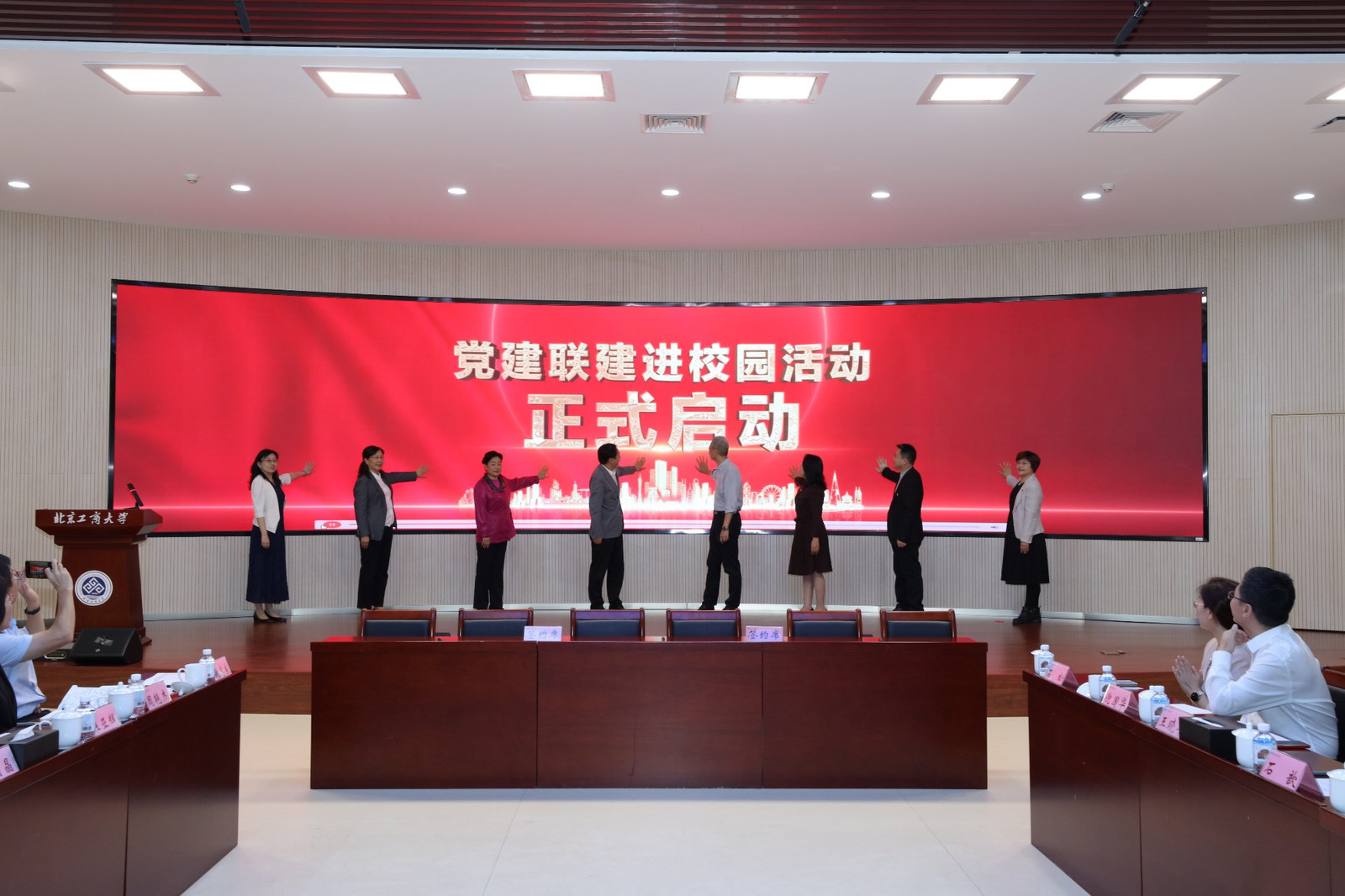 本次黨建聯建進校園活動的舉辦,是北京工商大學深化校企合作、落實“黨建引領高質量發展”的重要舉措。學校將以此次活動為起點,進一步發揮“黨建引領產業創新聯建機制”平臺作用,與各位企業界同仁精誠合作、互利共贏,以黨建工作為引領,以業務合作為推動,實現黨建、業務發展雙融雙促,在服務首都經濟發展和助力教育強國建設事業中作出更大貢獻。