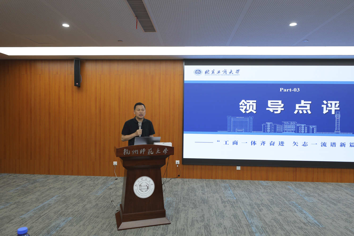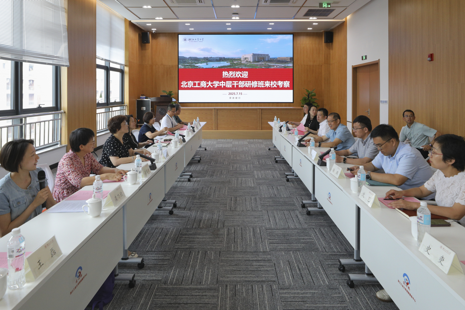 在浙江工業大學,參訓學員先后參觀了莫干山研究院產業創新園、綠色化學合成與轉化技術全國重點實驗室和地理信息學院展廳,了解了浙江工業大學在校地合作以及產學研用一體發展方面的有效做法和先進經驗。隨后,培訓班一行與浙江工業大學有關人員開展座談交流。浙工大副校長鄭華均以《創新內部治理機制 推進地方高校高質量發展》為題作報告,深度分析高校內部治理體系與高質量發展存在的不適之處,并分享了浙工大在創新內部治理方面的思路和舉措。雙方圍繞高校內部治理相關問題展開交流討論。宋曉欣為座談會作總結講話。她對浙江工業大學的熱情接待和傾情分享表示感謝。她談到,浙工大既有敢為人先的卓越追求,也有腳踏實地的落實路徑;有敢闖敢試的創新思維,也有敢啃硬骨頭的堅定決心,有深耕內部治理的先進做法,也有校地共建的全局視野。同為地方高校,北工商將把浙工大的先進經驗帶回去,將此行學習成果轉化為助力學校建設發展的強大動能。