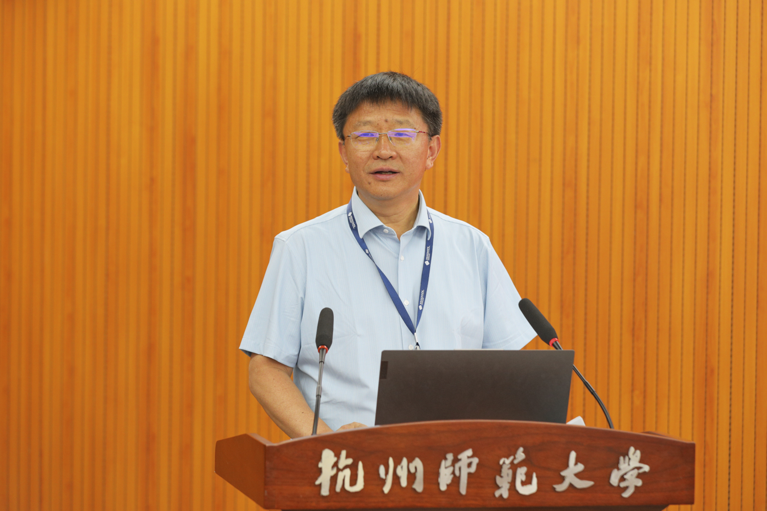 7月14日,在杭州師范大學舉行開班儀式。國家教育行政學院進修一部副主任楊中超主持儀式并宣讀培訓紀律,楊紅、寇紅江為培訓班授旗,宋曉欣作培訓動員講話。