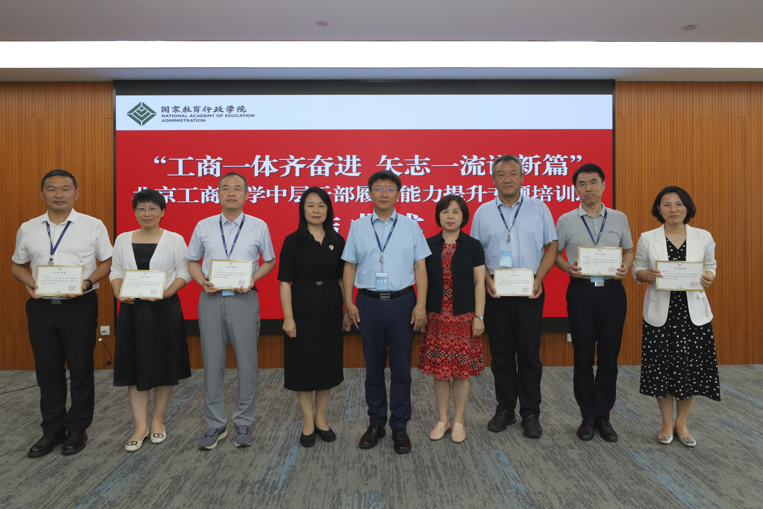 郭建華作總結講話。他代表學校向為成功舉辦此次培訓付出辛勤努力的國家教育行政學院領導和老師表示衷心的感謝。他談到,本次培訓班辦得及時且效果顯著,主要有三個特色:一是精心組織。本次培訓是落實學校今年十大重點任務的重要舉措之一,學校黨委多次研究,黨委組織部精心籌備,目標明確、規模空前。二是高端配置。依托國家級教育干部培訓平臺,安排了最優質的師資力量和培訓資源。三是交流互鑒。參訓干部來自不同部門、院系和崗位,大家學習認真,討論深入,交流充分,紀律嚴明,在達成培訓目標的同時展示出北工商干部的良好精神風貌。