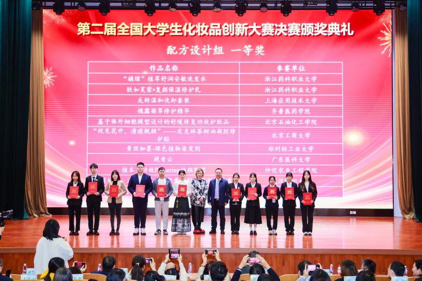 本次大賽由北京工商大學(xué)和中國(guó)日用化工協(xié)會(huì)主辦,輕工科學(xué)與工程學(xué)院和化妝品學(xué)科建設(shè)與創(chuàng)新發(fā)展專(zhuān)業(yè)委員會(huì)承辦。我校高度重視,輕工科學(xué)與工程學(xué)院認(rèn)真籌備確保比賽各環(huán)節(jié)順利進(jìn)行,學(xué)校積極組織學(xué)生參賽,在指導(dǎo)教師和參賽隊(duì)員共同努力下取得優(yōu)異成績(jī),共獲一等獎(jiǎng) 5 項(xiàng)、二等獎(jiǎng) 1 項(xiàng)、三等獎(jiǎng) 7 項(xiàng)、優(yōu)秀獎(jiǎng) 1 項(xiàng),7 名教師獲優(yōu)秀指導(dǎo)教師獎(jiǎng),學(xué)校獲優(yōu)秀組織獎(jiǎng)。本次比賽全面展示學(xué)生科技創(chuàng)新和綜合能力的最新成果,通過(guò)以賽促學(xué)、以賽促教、以賽促創(chuàng)推動(dòng)產(chǎn)教融合,加快化妝品領(lǐng)域高水平復(fù)合型人才培養(yǎng),學(xué)生在舞臺(tái)上綻放光彩,推動(dòng)學(xué)校相關(guān)學(xué)科專(zhuān)業(yè)發(fā)展、學(xué)生實(shí)驗(yàn)實(shí)踐和創(chuàng)新能力提升,擴(kuò)大了我校化妝品學(xué)科專(zhuān)業(yè)的影響。