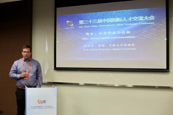 在專題研討環(huán)節(jié),九位專家學(xué)者依次發(fā)表了精彩演講,深入剖析了數(shù)字經(jīng)濟(jì)領(lǐng)域的多個(gè)前沿議題。貝勒大學(xué)卡默商學(xué)院Joshua副教授以“Social Capital and Innovation”為題,利用社交與專利數(shù)據(jù)探討社會(huì)網(wǎng)絡(luò)對(duì)地區(qū)創(chuàng)新能力的影響。