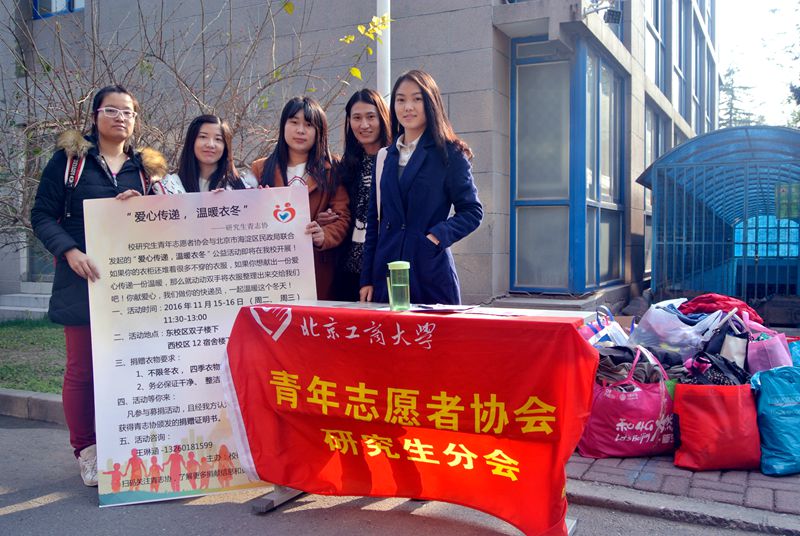 11月15日-16日,我校研究生青年志愿者協會開展了第五屆“愛心捐贈,溫暖衣冬”閑置衣物捐贈活動,期間吸引捐贈者總計256人,募集衣物320kg?;顒佑裳芯可嘀緟f主辦,并得到海淀區民政局捐贈中心的支持。