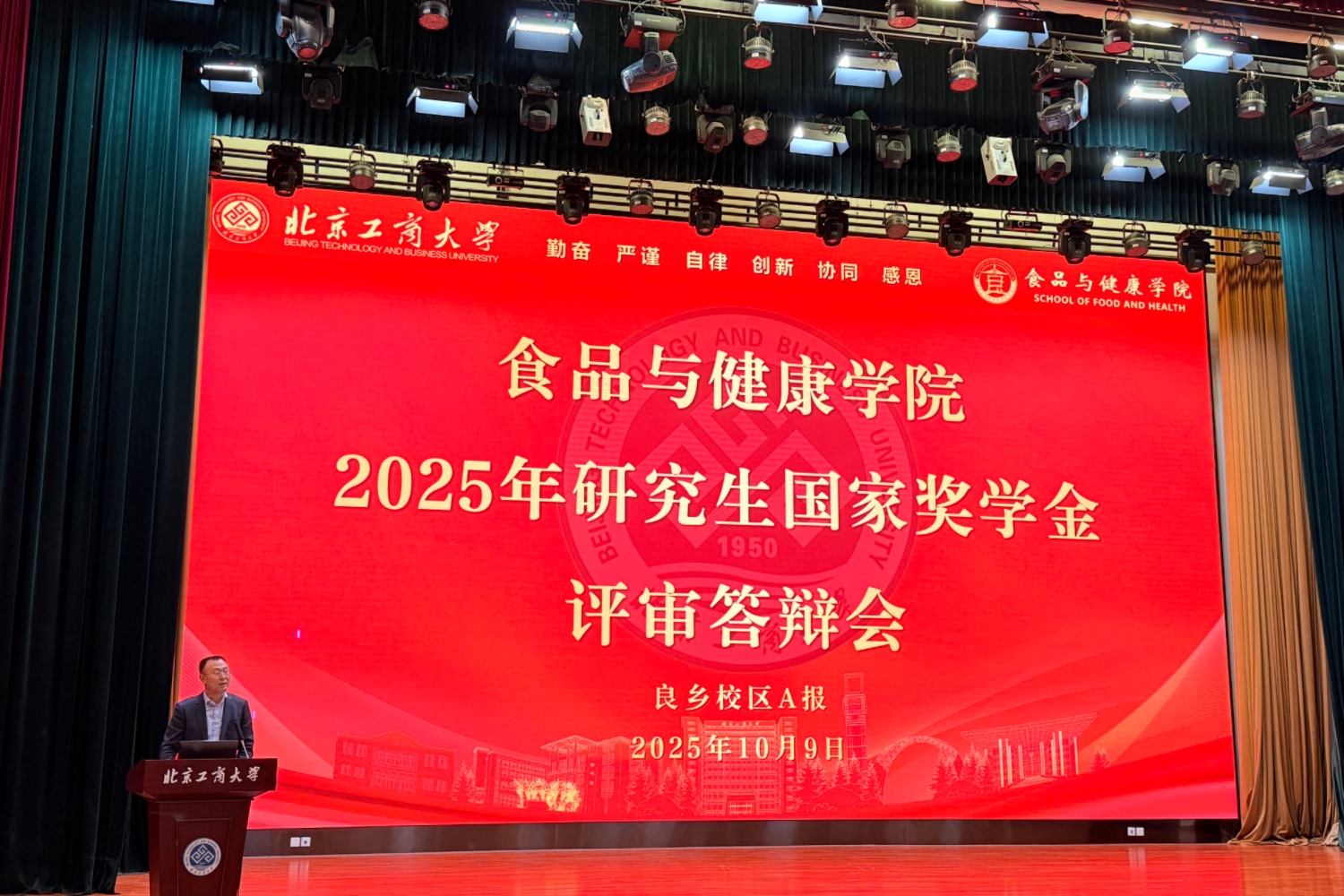 為深化研究生教育改革,選拔樹立優(yōu)秀典型,營造崇尚學術、追求卓越的育人氛圍,10月9日,食品與健康學院在良鄉(xiāng)校區(qū)A報告廳隆重舉行2025年研究生國家獎學金評審答辯會。學院院長王彥波、黨委副書記熊慧、副院長劉慧琳、孫嘯濤、院長助理張嬋,以及各系主任、教師代表、專兼職輔導員和研究生代表共計200多人參會。會議由李泰沛同學和劉晨朔同學主持。