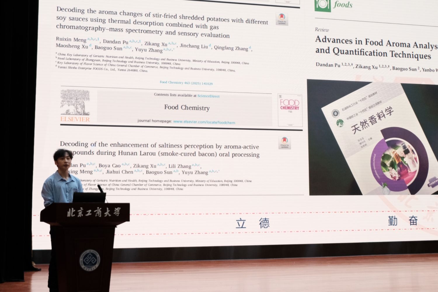 按照“公平、公正、公開、擇優(yōu)”的原則,答辯分為博士組、學碩組和專碩組三個類別依次進行。共有30名候選人參與答辯,包括博士研究生9人、學術型碩士8人、專業(yè)型碩士13人。在限時3分鐘的陳述中,候選人圍繞思想品德、學業(yè)成績、科研與實踐成果、發(fā)展?jié)摿Φ确矫嬲归_匯報。在緊張而有序的答辯會上,優(yōu)秀學子們盡展風采,他們圍繞學業(yè)成績、科研創(chuàng)新與社會實踐等多個維度,全面而精煉地匯報了自己在過去一學年中的成長與收獲。在學業(yè)方面,候選人們展現(xiàn)了扎實的專業(yè)功底,多位同學學業(yè)成績名列前茅;在科研領域,李忍同學自入學以來,以第一作者身份累計發(fā)表SCI論文9篇,全部為中國科學院TOP期刊論文,其中3篇影響因子超過10,1篇入選高被引論文;獲得授權發(fā)明專利1項,參編學術著作1部,該著作已被隆平水稻博物館永久收藏;同時,擔任Journal of Cereal Science、Natural Product Communications和Applied Food Research等多個國際期刊的審稿人。在學科競賽方面,孫璐瑤同學作為核心研發(fā)人員及答辯成員在第十九屆“挑戰(zhàn)杯”全國大學生課外學術科技作品競賽“揭榜掛帥”專項賽中獲國家級特等獎及項目擂主;在“互聯(lián)網+”“青創(chuàng)北京”“京彩大創(chuàng)”等各類競賽中均榮獲省市級以上獎項。在社會實踐與綜合素質方面,多位候選人分享了在學生工作、志愿服務、社會調研、企業(yè)實習等方面的豐富經歷,展現(xiàn)了新時代研究生知行合一、擔當奉獻的全面素養(yǎng)。