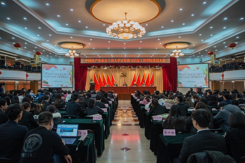 大會在莊嚴的國歌中拉開帷幕。張國龍宣讀了學校黨委《關于同意中共北京工商大學計算機與信息工程學院委員會召開黨員大會的批復》。
