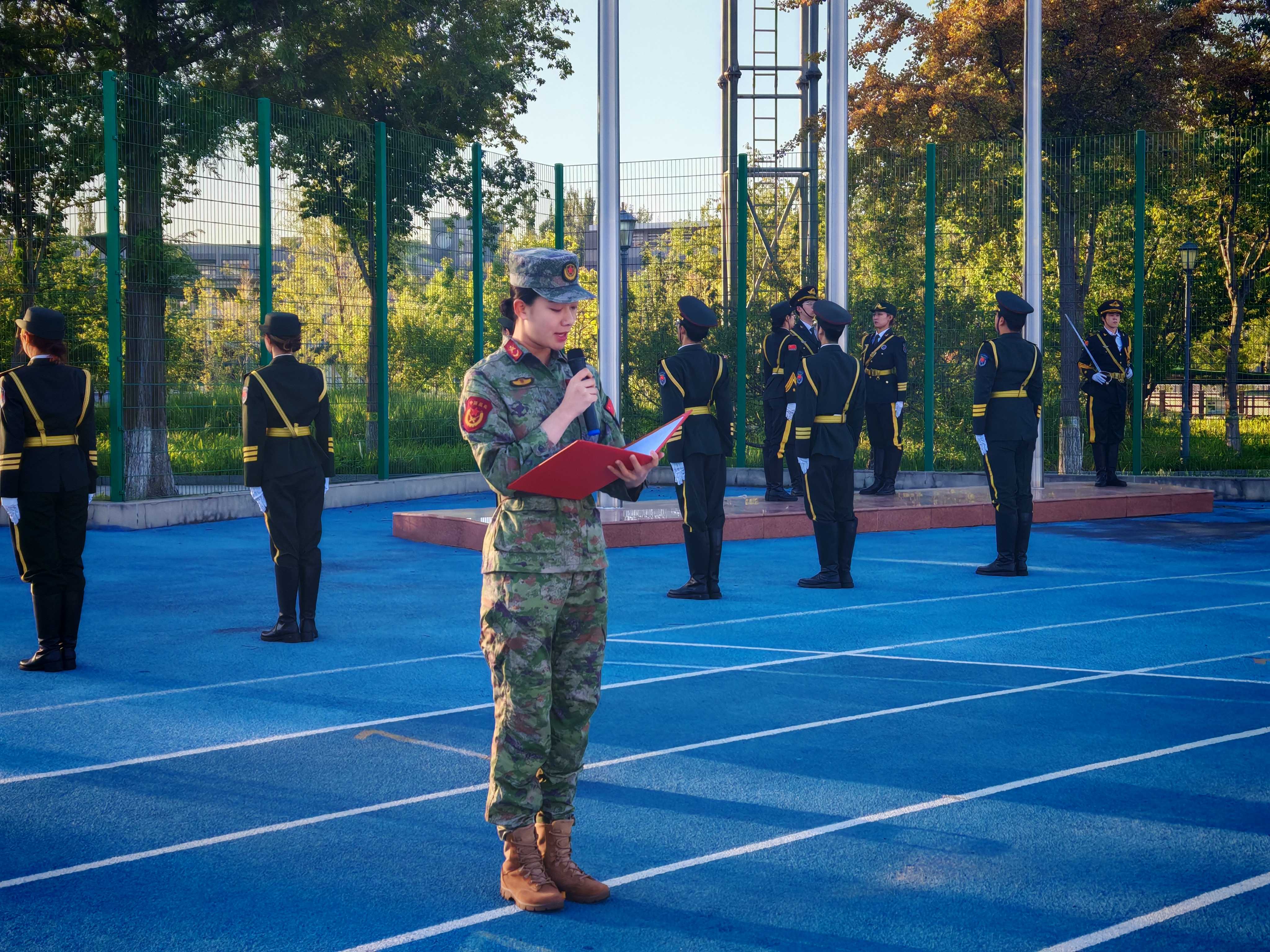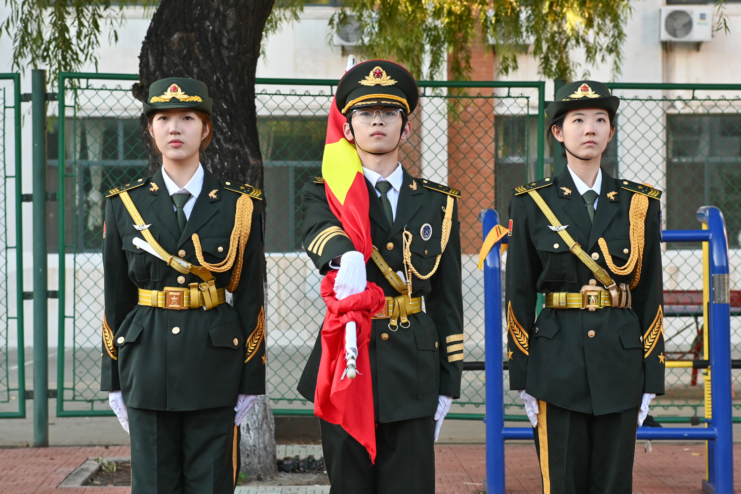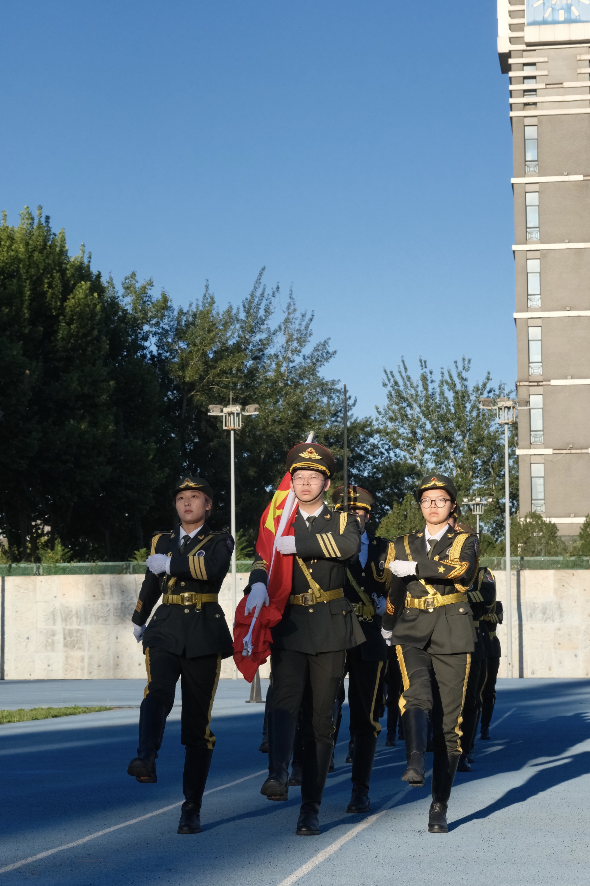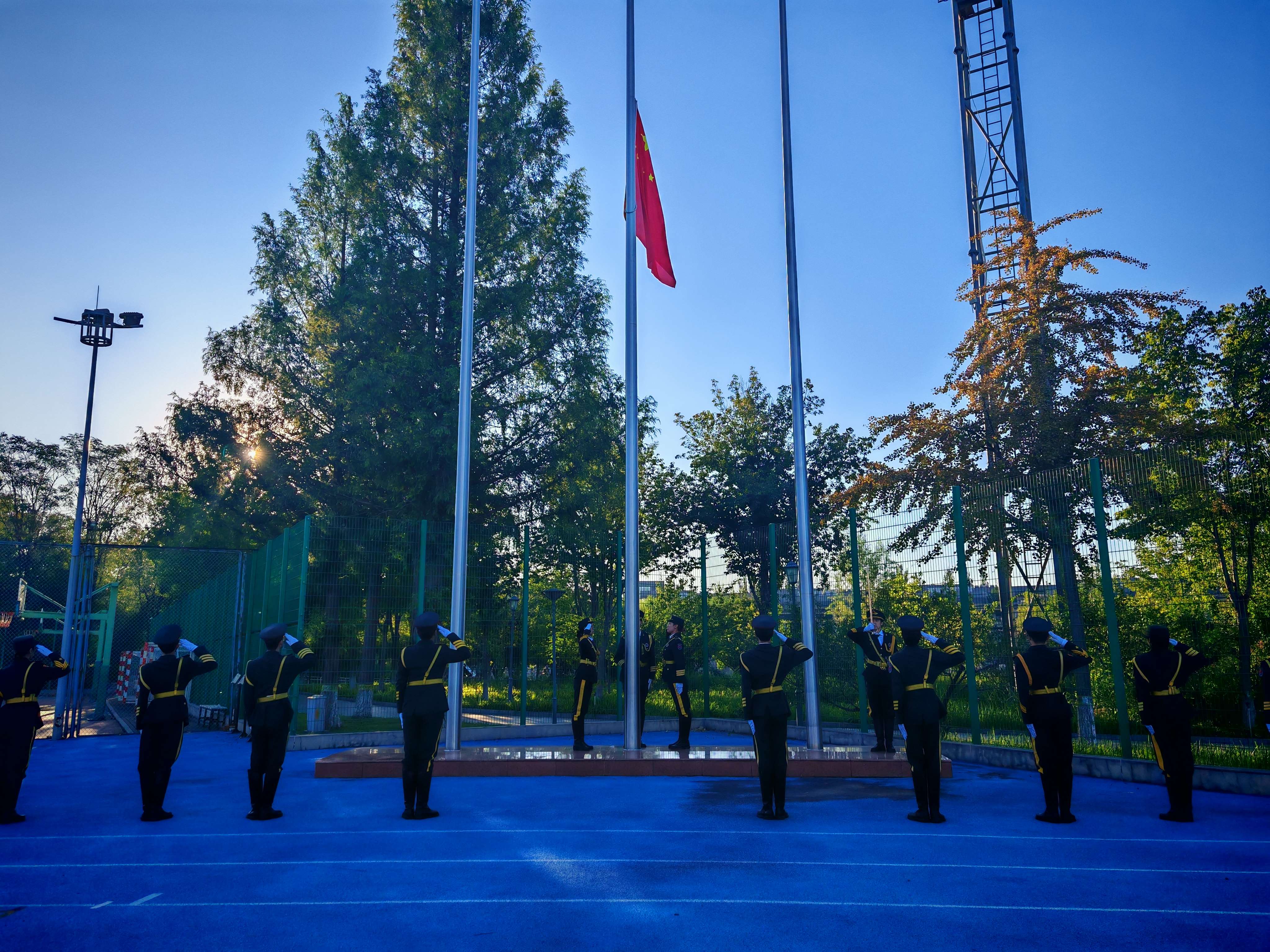 晨曦微露,氣溫微涼。英姿颯爽的國旗護衛(wèi)隊邁著鏗鏘有力的步伐,護衛(wèi)著鮮艷的五星紅旗莊嚴入場。伴隨著雄壯激昂的《義勇軍進行曲》奏響,五星紅旗迎著朝陽緩緩升起。全體師生肅立,面向國旗行注目禮,齊聲高唱國歌,緬懷先輩、致敬先烈。