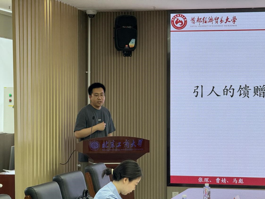 5月13日下午,“北工商-首經貿”應用經濟學科雙邊論壇在我校良鄉主校區舉辦。首都經濟貿易大學金融學院院長周開國教授,數據科學學院副院長沙葉舟教授,科研處副處長何楓教授,金融學院教師焦安琪副教授、汪念玲副教授、馬彪副教授、楊李正博,北京工商大學經濟學院執行院長詹新宇教授,副院長牛曉燕副教授,經濟系主任陳真玲教授、教師楊曉婷副教授、張凡,金融系李波副教授、李惠璇副教授和我院20余位研究生參加此次論壇交流活動。