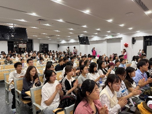 趣玩互動,韻承文化。游戲環(huán)節(jié)無疑是氣氛最熱烈的部分。無論是考驗知識儲備的“國慶中秋知識問答”,還是緊張有趣的“擊鼓傳花”和“emoji猜成語”,同學們都踴躍參與,現(xiàn)場歡聲笑語不斷。這不僅僅是簡單的游戲,更是一座連接家國情懷、文化自信與青春活力的橋梁。在搶答中,同學們共同重溫了關于祖國與傳統(tǒng)的文化記憶;在才藝展示里,他們見證著青年學子蓬勃的創(chuàng)造力。這些互動讓宏大的“家國團圓”主題化為身邊可感、可參與的生動體驗,不僅增強了同學們對民族文化的認同感和自豪感,更在默契協(xié)作中深化了彼此的友誼,凝聚了寶貴的集體精神。