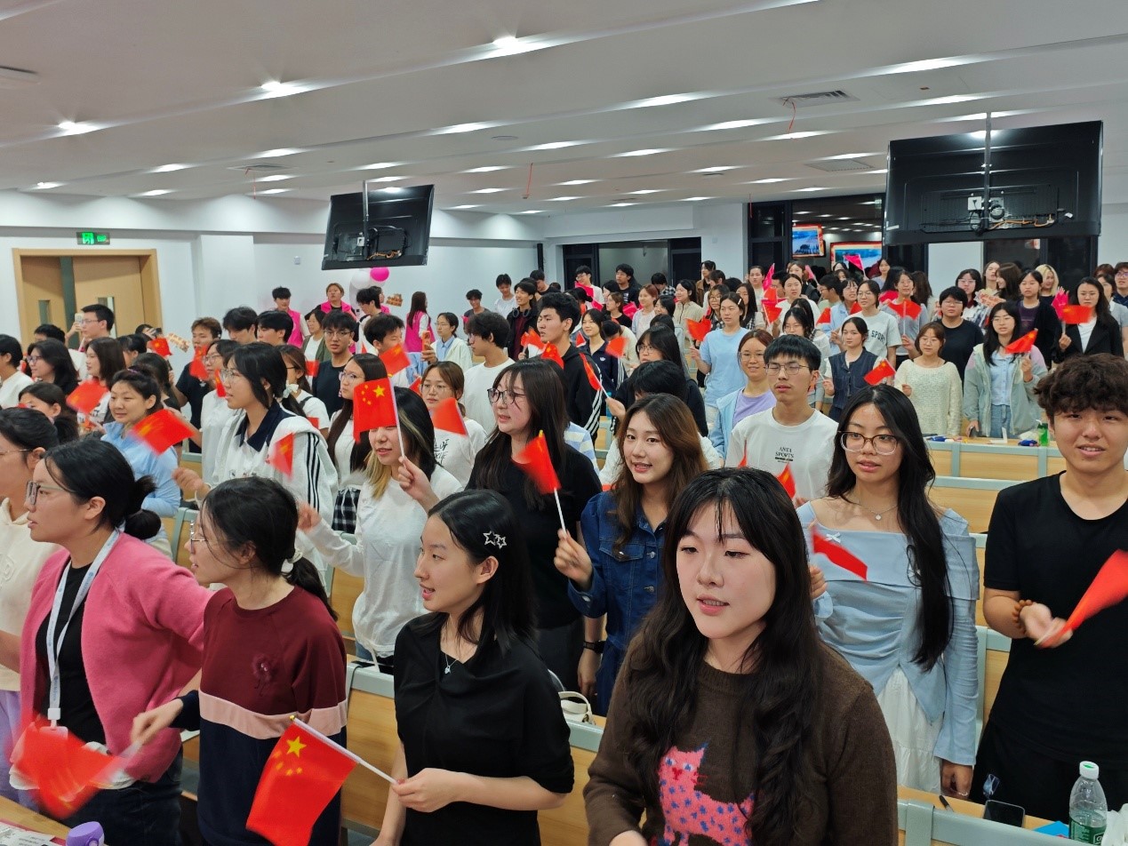 隨著《歌唱祖國》的旋律響起,全體學生自發(fā)起身,揮動手中的國旗,用最真摯、最嘹亮的歌聲,共同為祖國獻上深情的祝福。這一刻,個人的情感與家國的情懷緊密相連,晚會的溫馨與激昂在此刻凝聚為一股磅礴的青春力量。