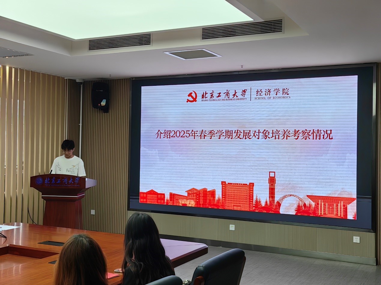 本科生黨建工作室組織部負(fù)責(zé)人楊澤凱介紹2025年春季學(xué)期發(fā)展對象培養(yǎng)考察情況。他表示,牢牢遵循發(fā)展黨員工作控制總量、優(yōu)化結(jié)構(gòu)、提高質(zhì)量、發(fā)揮作用的總要求,經(jīng)濟學(xué)院持續(xù)優(yōu)化北京工商大學(xué)經(jīng)濟學(xué)院《學(xué)生入黨積極分子“發(fā)展積分”制度實施辦法》落地運行,積極探索創(chuàng)新學(xué)生黨員、學(xué)生入黨積極分子考察內(nèi)容、標(biāo)準(zhǔn)、路徑和方式方法,現(xiàn)已形成立體式、多渠道的學(xué)生黨員培養(yǎng)考察體系。經(jīng)考察,春季學(xué)期共有46名發(fā)展對象自身條件合格,入黨材料審閱合格,符合黨員標(biāo)準(zhǔn),由各支部接收為預(yù)備黨員。