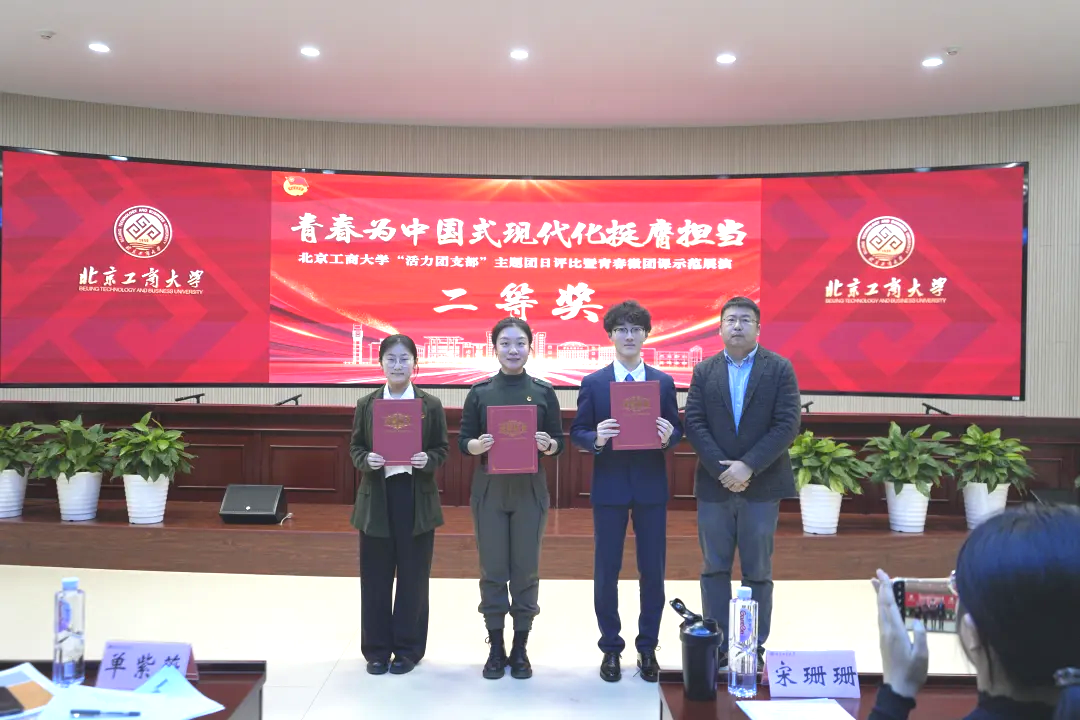 首都師范大學良鄉校區基礎學部黨總支副書記郭猛為二等獎獲獎支部代表頒獎。獲獎支部為:馬克思主義學院馬研233團支部、法學院法研2332團支部、食品與健康學院香料23團支部。