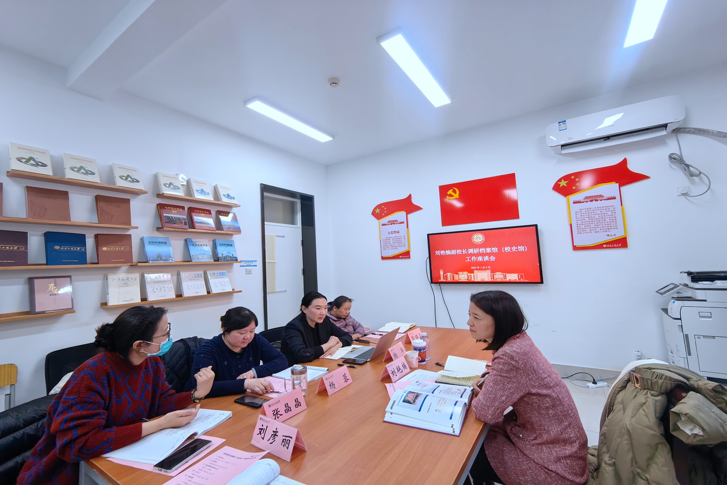 1月2日下午,學校副校長劉艷楠與檔案館(校史館)教職工開展調研座談。檔案館(校史館)館長楊華、全體職工陪同調研。