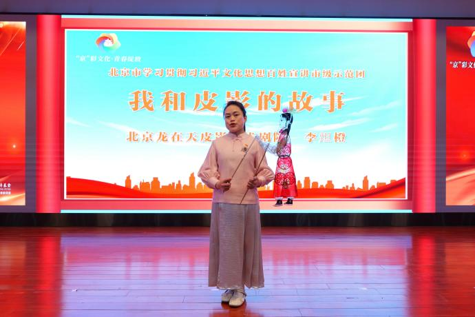 光影躍動(dòng)續(xù)非遺。北京龍?jiān)谔炱び八囆g(shù)劇院演員李炟橙講述了自己從學(xué)習(xí)皮影、制作皮影,到講授皮影課的故事。她在學(xué)校里教學(xué)生皮影表演、唱腔、雕刻等,還一起創(chuàng)作了英文、法文、俄文等多語(yǔ)種皮影戲,努力讓中國(guó)皮影走向世界。她立誓要用皮影戲傳播中國(guó)好聲音,講述中國(guó)好故事!