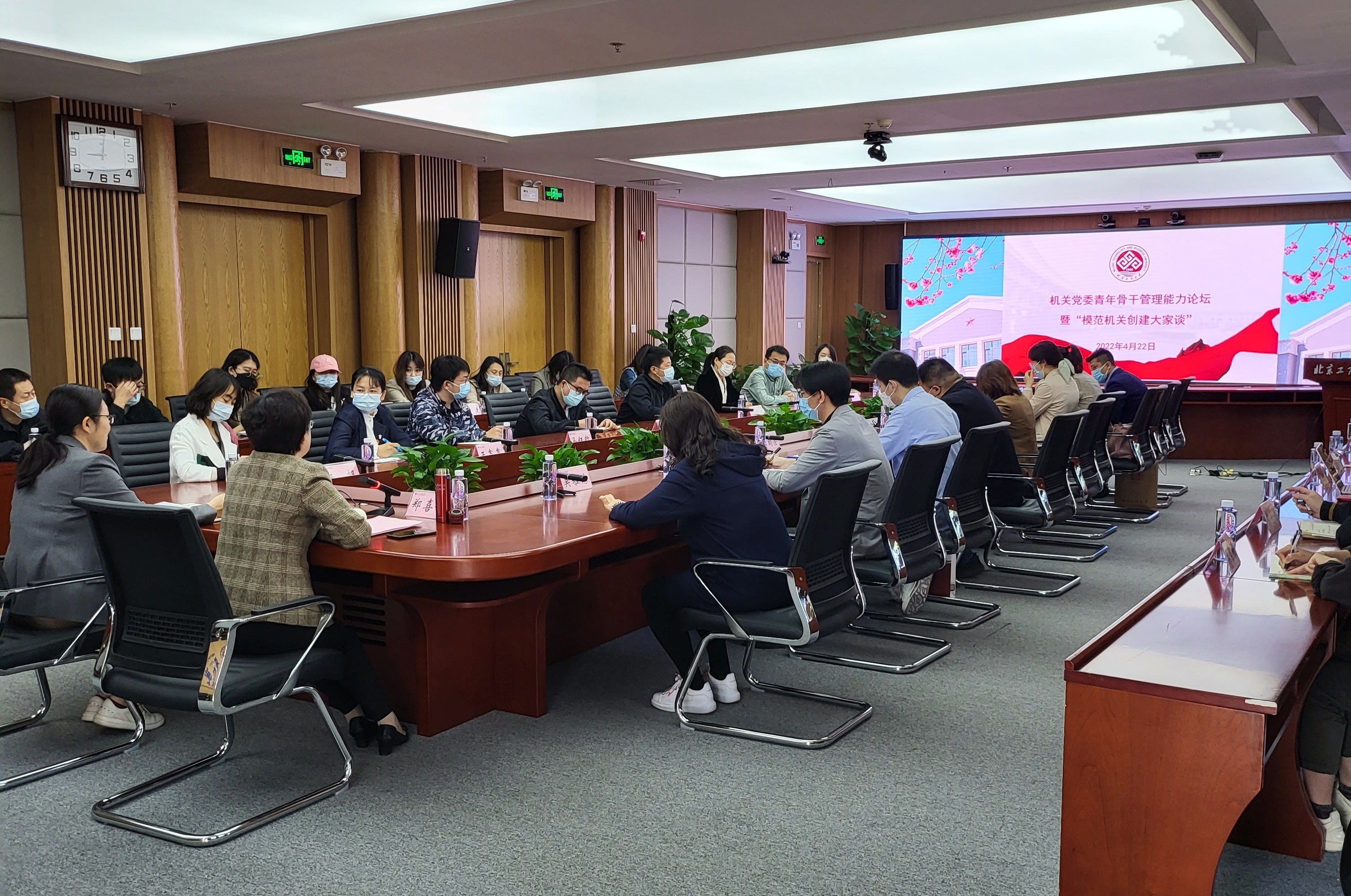 為持續(xù)改進(jìn)工作作風(fēng),進(jìn)一步提升機(jī)關(guān)管理效能,4月22日,機(jī)關(guān)黨委在阜成路校區(qū)舉辦青年骨干管理能力論壇暨“模范機(jī)關(guān)創(chuàng)建大家談”活動(dòng)。各部門青年黨員代表近40人參加了論壇。黨委組織部副部長(zhǎng)崔新宇應(yīng)邀參加活動(dòng),活動(dòng)由機(jī)關(guān)黨委書記鄭喜姣主持。