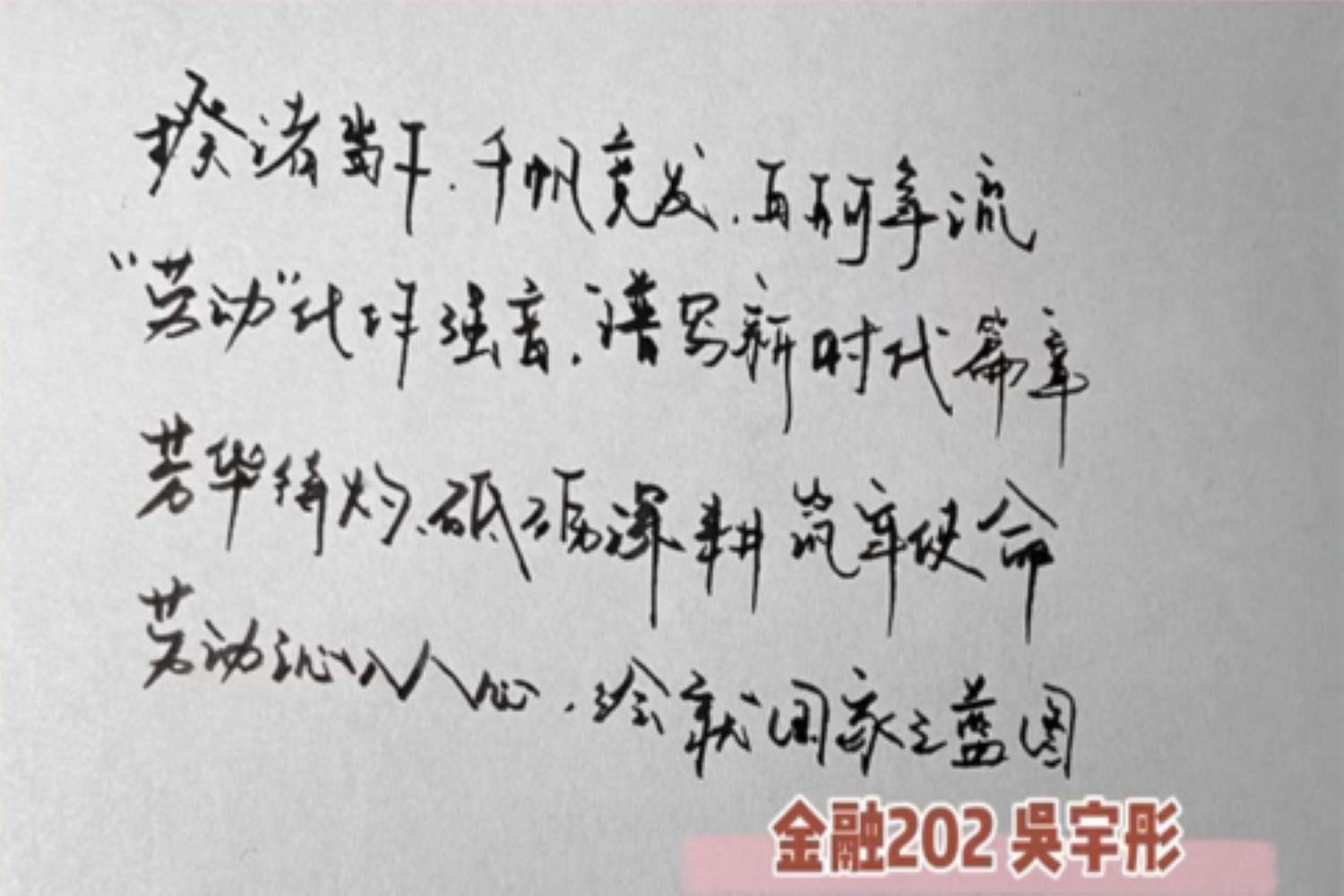 恰逢建團百年,學(xué)院結(jié)合學(xué)校“紙短情長,表白祖國”三行情書活動,號召學(xué)生用青春擁抱時代,勇?lián)啻菏姑幾鰟趧酉蠕h。學(xué)生結(jié)合自己的專業(yè)實際、發(fā)展規(guī)劃,以文字創(chuàng)作“三行情書”的形式,抒發(fā)了作為當(dāng)代青年的勞動價值觀與未來展望,展現(xiàn)勞育成果。