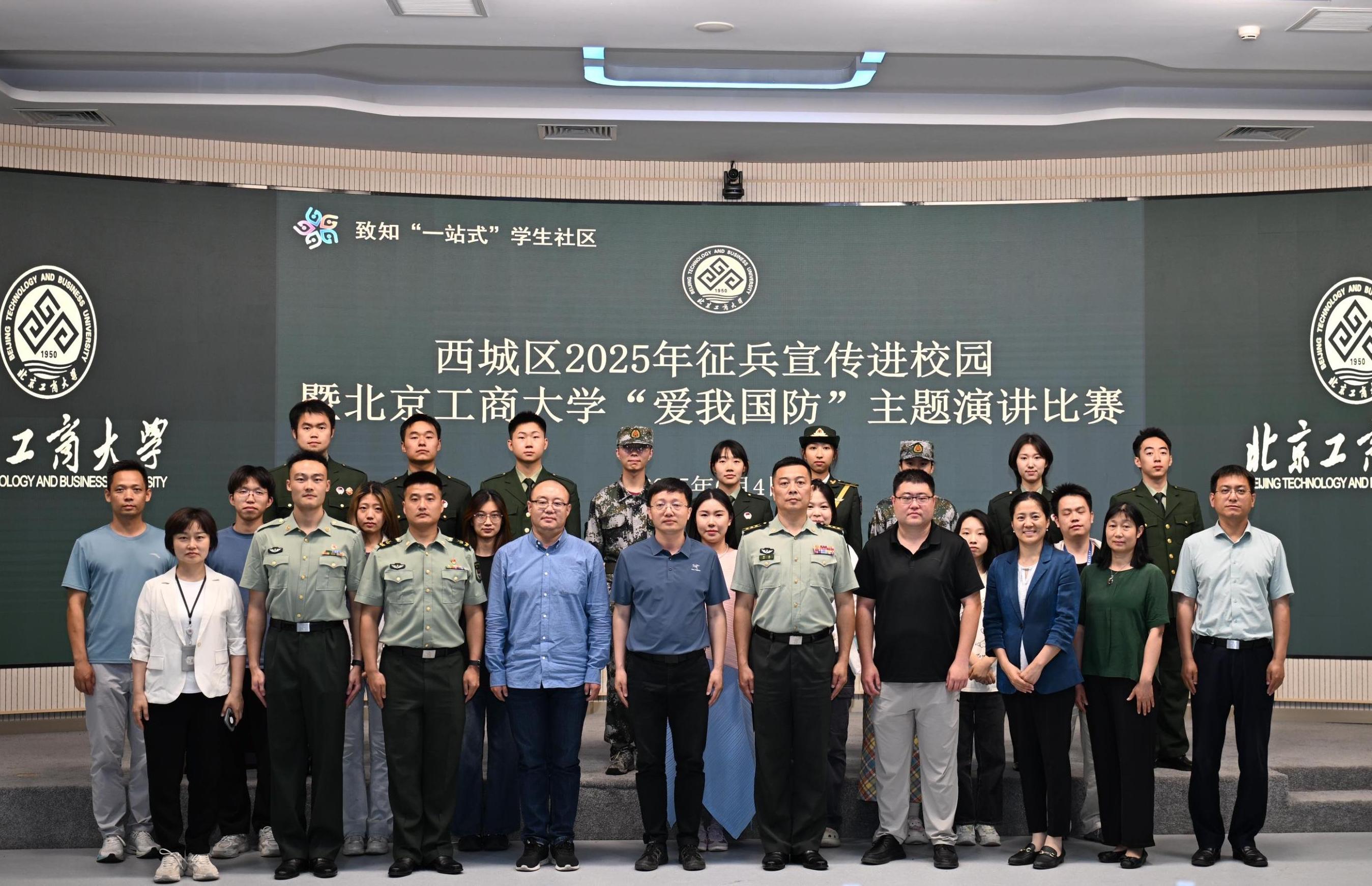 為紀(jì)念中國人民抗日戰(zhàn)爭暨世界反法西斯戰(zhàn)爭勝利80周年,增強(qiáng)青年學(xué)子參軍報(bào)國熱情,6月4日,在西城區(qū)人民武裝部的大力支持下,學(xué)校在良鄉(xiāng)校區(qū)舉辦西城區(qū)征兵宣講進(jìn)校園首場宣講會(huì)暨北京工商大學(xué)“愛我國防”主題演講比賽。西城區(qū)人民武裝部副部長周冰,北京中醫(yī)藥大學(xué)武裝部副部長趙小虎,我校武裝部部長鄭光、副部長黨浩,數(shù)學(xué)與統(tǒng)計(jì)學(xué)院黨委副書記畢平平以及百余名師生參加此次活動(dòng)。