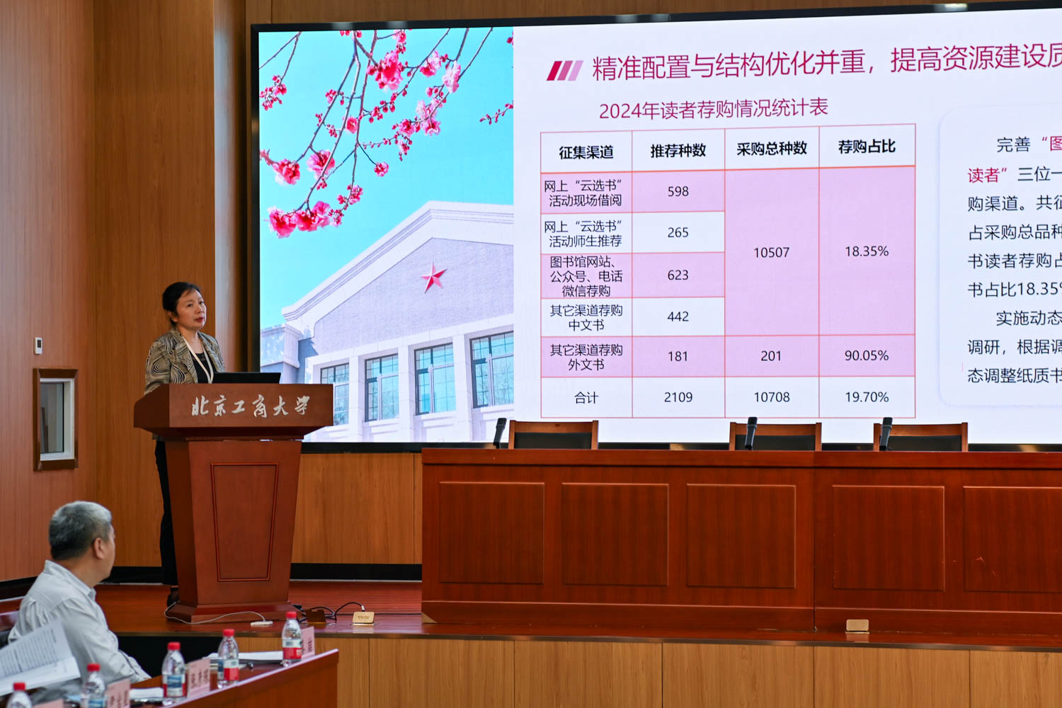 會議聽取了圖書館館長馬春暉關(guān)于2024年圖書館文獻(xiàn)信息資源建設(shè)情況的匯報(bào)。匯報(bào)以“精準(zhǔn)優(yōu)化、創(chuàng)新驅(qū)動,構(gòu)建‘工商一體化’理念導(dǎo)向下的文獻(xiàn)資源保障體系”為題,重點(diǎn)圍繞提高資源建設(shè)質(zhì)量、加大資源保障力度、收獲服務(wù)創(chuàng)新成績等方面展開,并從支撐服務(wù)學(xué)校發(fā)展戰(zhàn)略、學(xué)科建設(shè)需求等出發(fā)提出了2025年文獻(xiàn)資源建設(shè)重點(diǎn)工作。