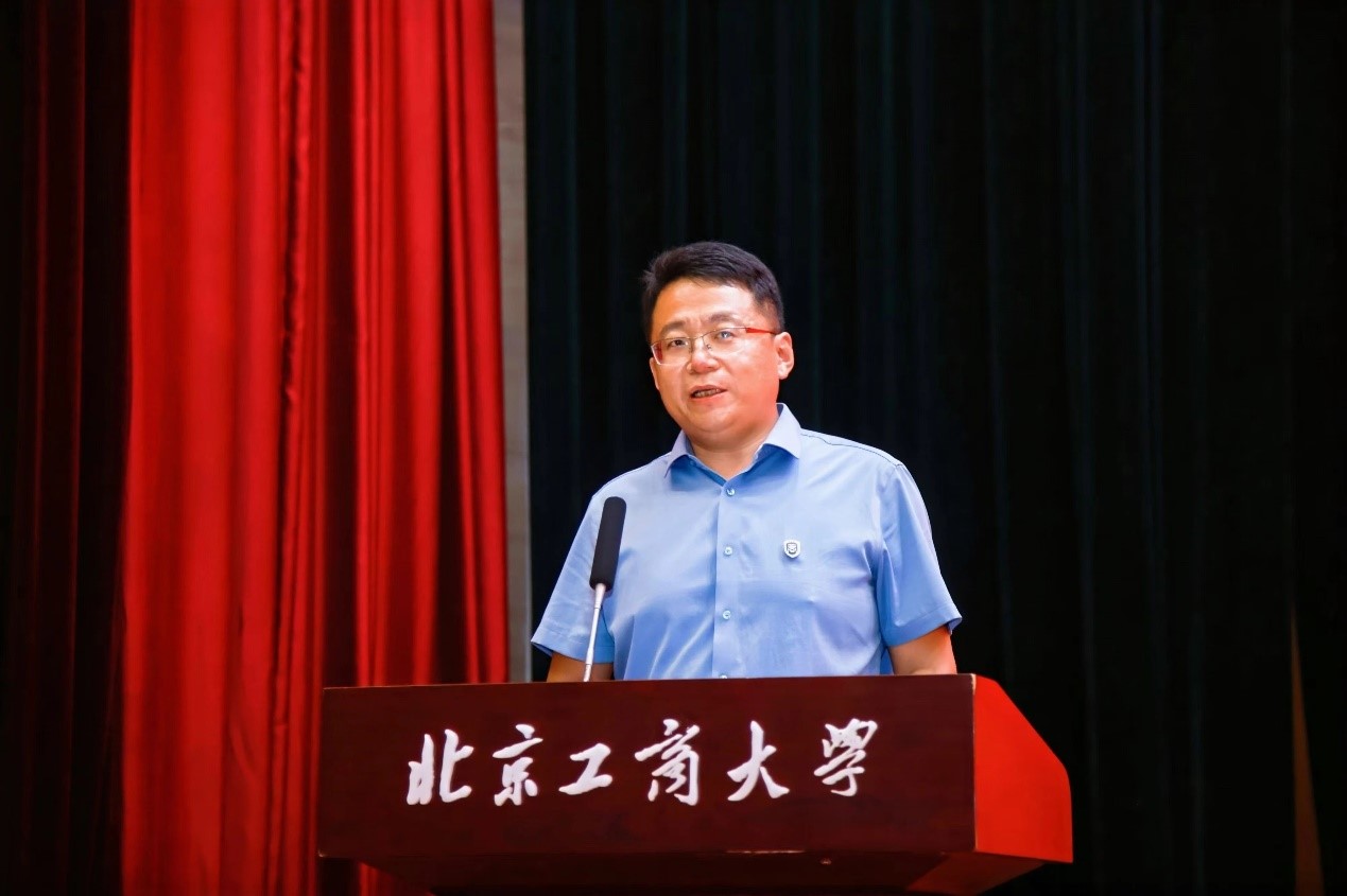 付仕倫在講話中表示,自今天起,同學們將以“北工商商院人”這個嶄新的身份在這里開啟新的人生旅程,也將為商學院帶來新的生機與活力,隨著同學們對學校學院的了解不斷深入,一定會對未來有著更高的期待,學院的師長們將始終密切關注大家的學習生活,為大家成長成才鋪路搭橋、保駕護航。希望大家繼承發揚學院使命愿景,傳承“求是 創新 協作 卓越“的價值觀,早日讀懂商院、融入商院,傳承商學院與生俱來北工商紅色基因,堅定理想信念,以開拓進取的姿態激發新作為,以時不我待的精神擔起新使命,努力成長為德智體美勞全面發展的社會主義建設者和接班人。