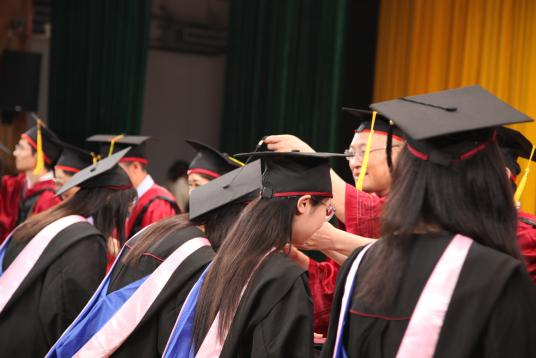 在2023屆本科畢業(yè)生學位授予儀式環(huán)節(jié),學院學位委員會成員張春萍、毛新述、張倩、孫永波、張偉華、鄧春平、彭紅星、張晨宇、王勇及導師代表朱蓉共同為全體本科畢業(yè)生撥蘇正冠并頒發(fā)學位證、畢業(yè)證。正冠撥穗,商舟揚帆,領航未來。
