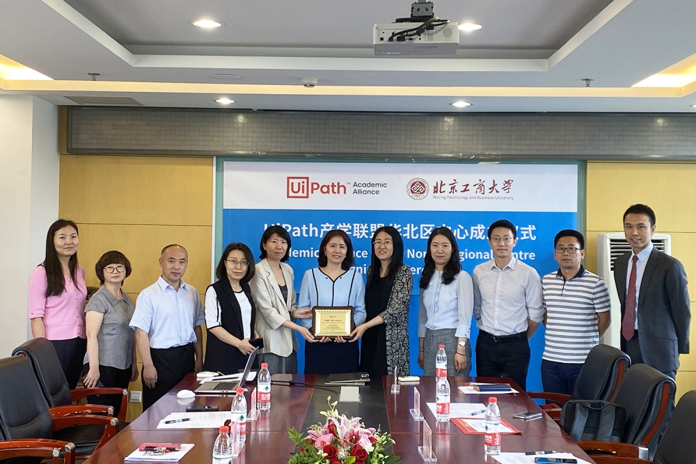 6月8日,UiPath產學聯盟華北區域中心成立授牌暨與我校商學院自動化與人工智能商業應用研究中心合作備忘錄簽署儀式在阜成路校區舉行。商學院黨委書記張春萍、自動化與人工智能商業應用研究中心主任孫玥璠、UiPath產學聯盟負責人石小萌及部分學生代表出席了本次儀式。