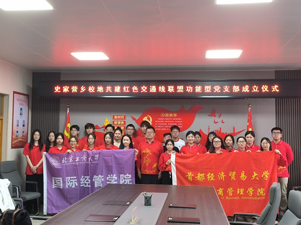 國際經(jīng)管學(xué)院黨委與首都經(jīng)濟(jì)貿(mào)易大學(xué)工商管理學(xué)院黨委、史家營鄉(xiāng)黨委、金雞臺村黨委舉行校地共建紅色交通線聯(lián)盟功能型黨支部成立儀式。成立儀式上,教師阿月爾介紹了紅色交通線聯(lián)盟功能型黨支部的具體構(gòu)成及基本情況。首都經(jīng)濟(jì)貿(mào)易大學(xué)工商管理學(xué)院教師付妍介紹了支部的議事規(guī)則。劉培虎指出,紅色交通線聯(lián)盟功能型黨支部的建立是學(xué)習(xí)貫徹黨的二十大精神的重要舉措,對于推動史家營鄉(xiāng)的紅色文化旅游發(fā)展與校地共建具有重要意義,也有助于師生探尋紅色記憶,深刻感悟革命精神,進(jìn)一步增強(qiáng)守初心、擔(dān)使命的思想自覺和行動自覺。