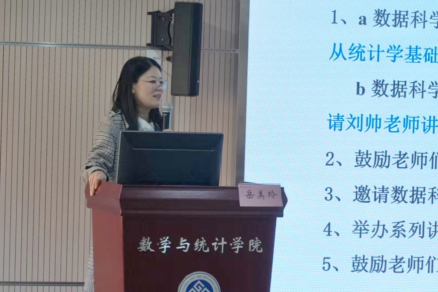 數(shù)學(xué)與統(tǒng)計(jì)學(xué)院副院長王康以“錨定一流學(xué)科,突出交叉特色,明晰戰(zhàn)略定位”為主題,圍繞學(xué)科布局、人才培養(yǎng)、研究梯隊(duì)和科研發(fā)展四個方面進(jìn)行專題匯報(bào)。應(yīng)用統(tǒng)計(jì)系主任謝峰、數(shù)據(jù)科學(xué)系主任岳美玲、經(jīng)濟(jì)統(tǒng)計(jì)系主任趙江分別就各系的基本情況、研究方向和未來規(guī)劃進(jìn)行了匯報(bào)交流。