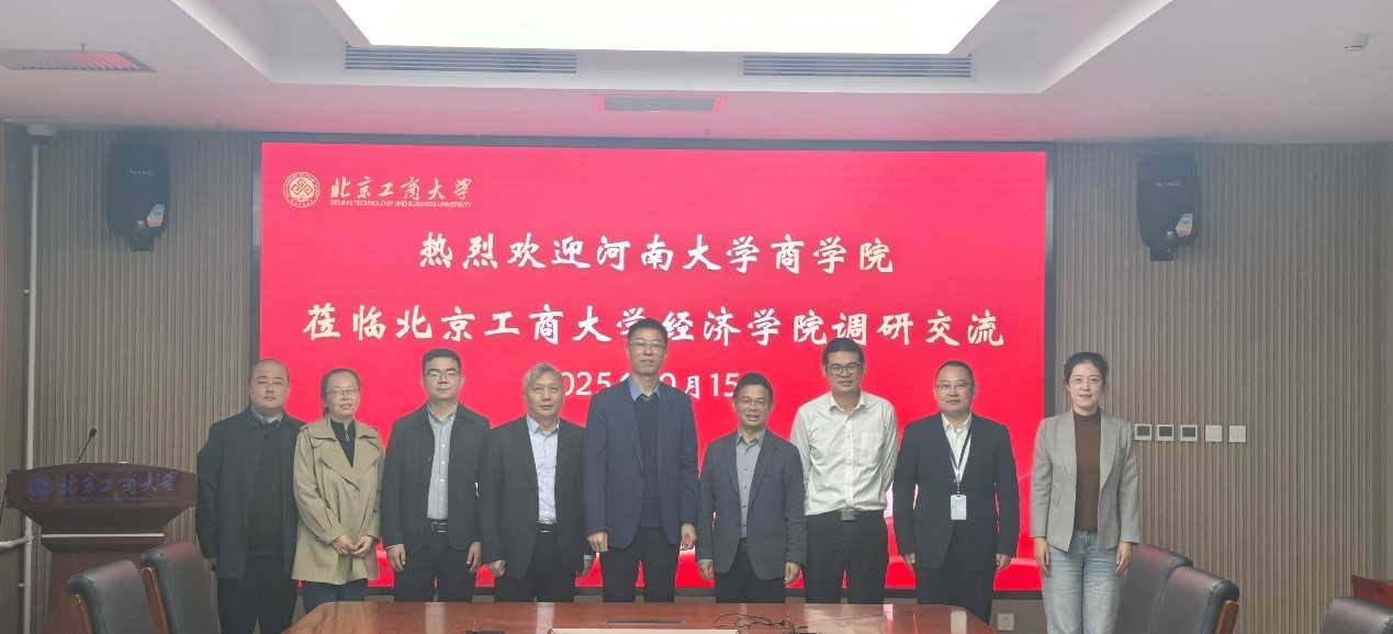 10月15日上午,河南大學商學院執行院長席龍勝教授、鄉村振興金融研究院院長王性玉教授(商學院原院長)、工商管理系主任董占奎副教授、科研與學科建設辦公室主任周士元副教授、王天雨副教授一行五人來我院開展調研交流活動。學校經濟學院執行院長詹新宇教授、副院長許敬軒教授,科學研究院人文社科處副處長岳鵬鵬副教授,經濟學院王愛萍副教授及科研辦公室孫嘉琳老師共同參加此次交流。會議由詹新宇主持。