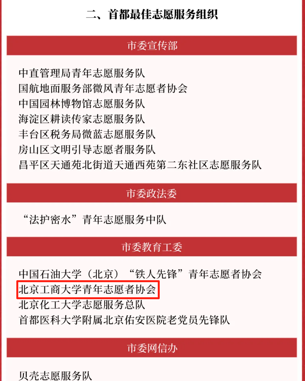 近日,由市委社會工作部、市委宣傳部(首都文明辦)等26個部門聯合主辦的2024年度首都志愿服務“四個100”先進典型宣傳活動圓滿落幕。經嚴格評審程序,北京工商大學青年志愿者協會從眾多參評組織中脫穎而出,獲評“最佳志愿服務組織”稱號,展現了新時代首都高校志愿服務的優秀風采。