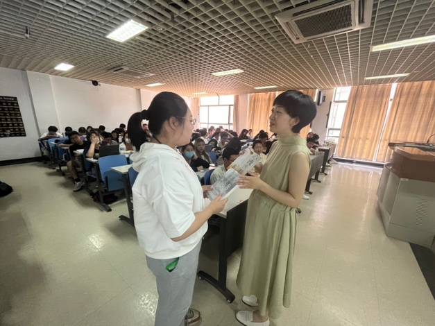 現(xiàn)任北京社會(huì)管理職業(yè)學(xué)院的孫源系2007級(jí)工商管理專業(yè)校友,為2022級(jí)工商管理專業(yè)的同學(xué)們授課,她引導(dǎo)學(xué)弟學(xué)妹們認(rèn)知自我、盡早結(jié)合自身情況開(kāi)展職業(yè)生涯規(guī)劃。她首先為同學(xué)們分享了自己職業(yè)生涯探索的道路,隨后,她從自我認(rèn)知、個(gè)人需求、個(gè)人能力幾個(gè)方面層層遞進(jìn),一步一步幫助同學(xué)們了解自己的興趣,挖掘、剖析自身的能力。孫源利用有趣的課堂互動(dòng)方式,充分地與同學(xué)們互動(dòng),學(xué)生們由被動(dòng)接收信息到主動(dòng)思考,逐步建立了從興趣認(rèn)知到價(jià)值觀培養(yǎng)到能力挖掘到職位匹配的思維模式。幽默生動(dòng)的課堂贏得了同學(xué)們的陣陣掌聲。最后,孫源為同學(xué)們送出了有關(guān)職業(yè)生涯規(guī)劃的兩本書,并向同學(xué)們表達(dá)了祝愿和期望。