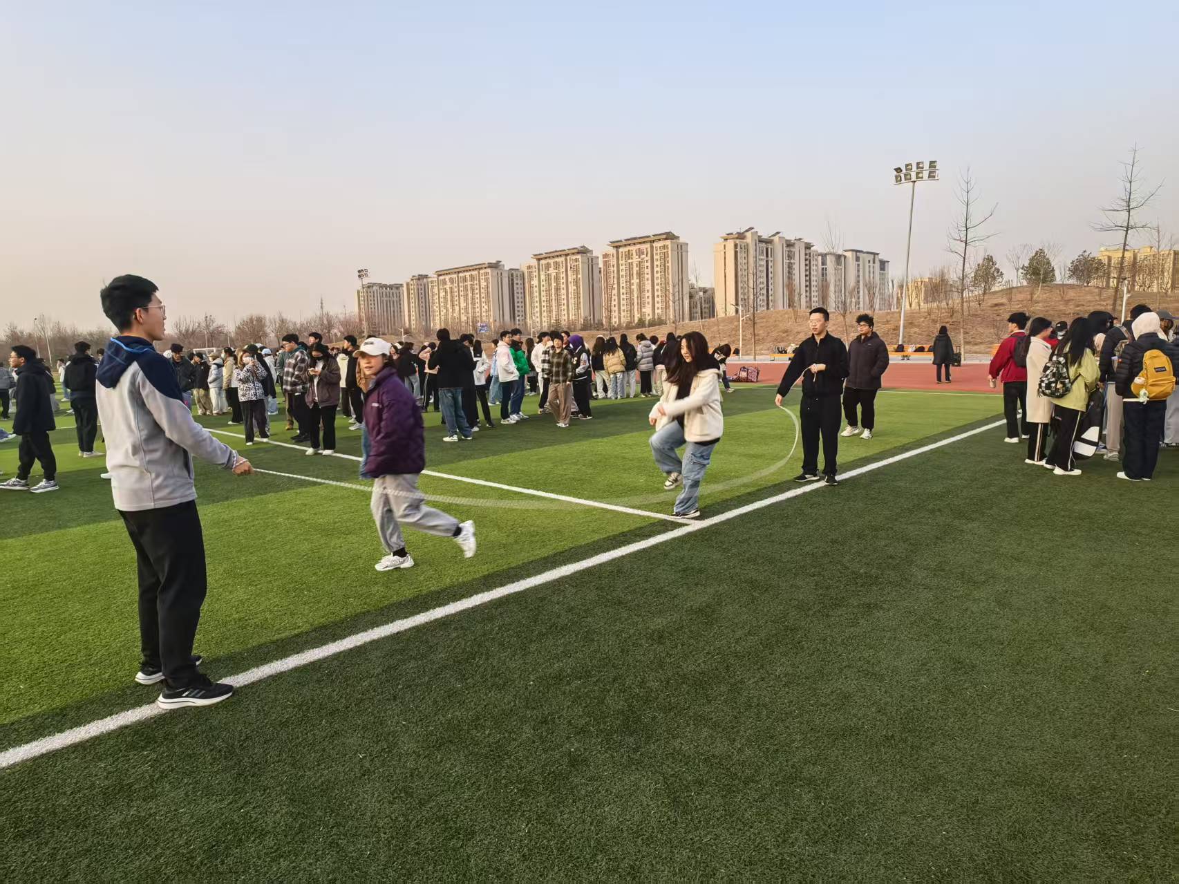 在學院輔導員、體育部及退伍老兵聯動組織下,2024級新生晨練計劃火熱啟動。除延續晨跑拉練、熱身活動等常規項目外,學院還組織同學們開展跳長繩、排球等特色體育活動,趣味項目吸引更多的新生參與到晨練活動中。智能手環實時生成“運動效能折線圖”,汗水與歡笑交織的清晨,重塑著經院學子的體魄與思維韌性。