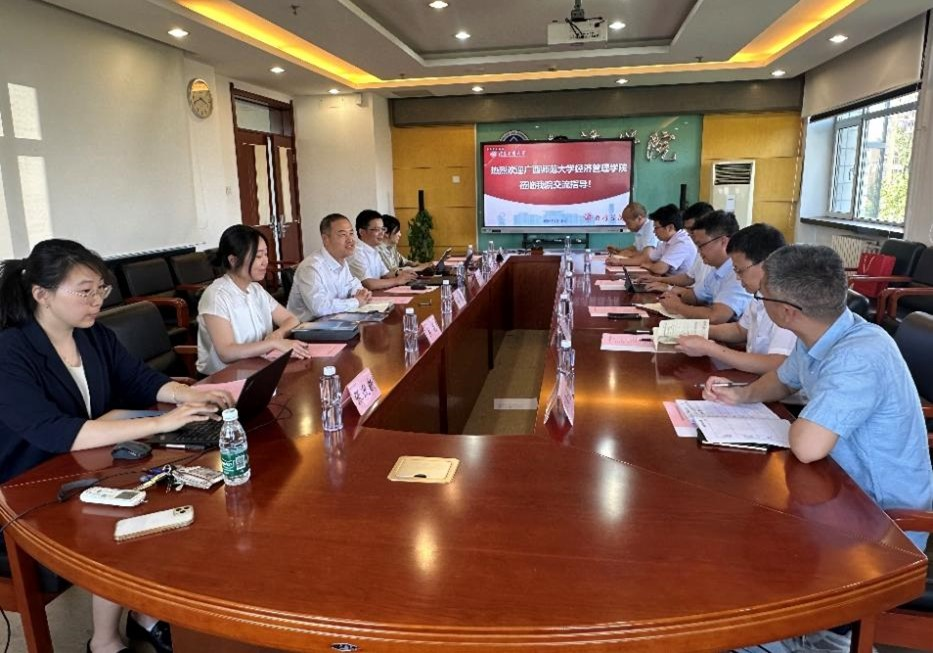 5月15日下午,廣西師范大學(xué)經(jīng)濟(jì)管理學(xué)院領(lǐng)導(dǎo)班子一行六人來經(jīng)濟(jì)學(xué)院調(diào)研交流。廣西師范大學(xué)經(jīng)濟(jì)管理學(xué)院黨委書記陳國華、院長張海豐、副院長伍先福、副院長張學(xué)龍、院長助理李強(qiáng)誼、辦公室主任蔣敏,北京工商大學(xué)經(jīng)濟(jì)學(xué)院黨委書記呂良、執(zhí)行院長詹新宇、副院長馬雪嬌、副院長關(guān)晶、金融系副主任張迎新、辦公室黃新參加座談。