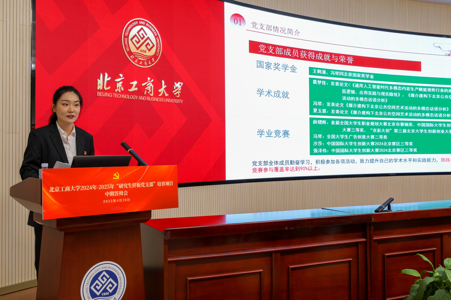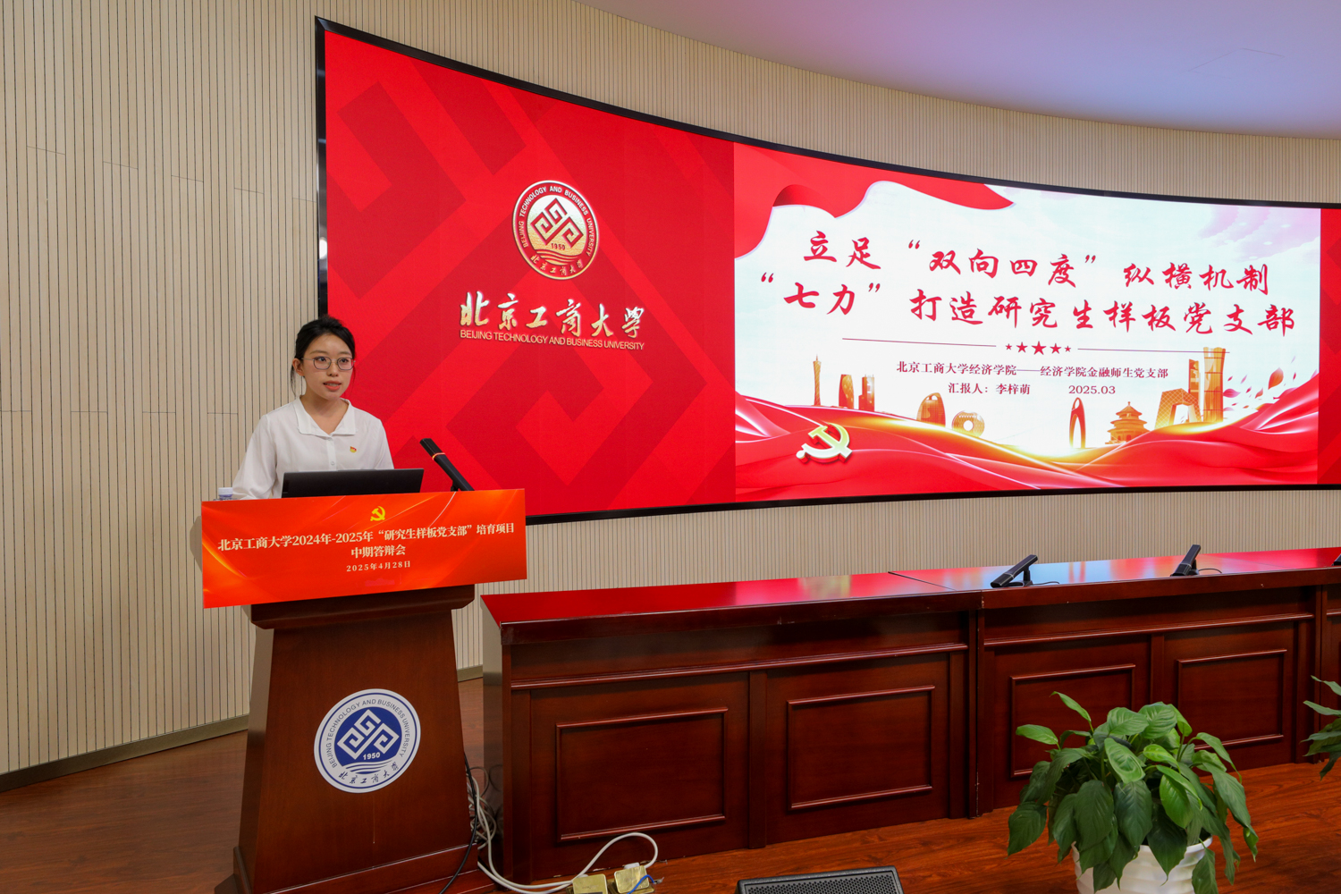 為落實全國教育大會精神、扎實推進我校研究生黨建工作高質量發展,做好“研究生樣板黨支部”培育工作,4月28日下午,學校在良鄉校區舉行北京工商大學2024-2025年“研究生樣板黨支部”培育項目中期答辯會。學校黨委副書記李中奇出席答辯會并講話。機關黨委、黨委組織部、黨委研究生工作部、各學院黨委書記、黨委副書記、副院長、研究生黨支部書記代表等120余人參會。黨委研究生工作部部長郭新愿主持會議。