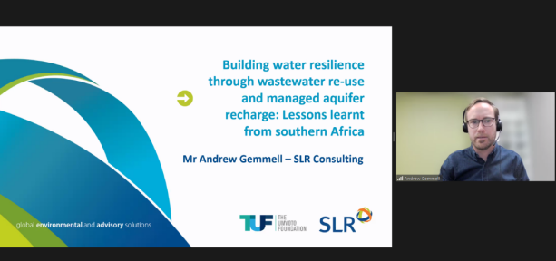 會議特邀報告環節由丁寧副教授、同濟大學李偉英教授及大連理工大學董應超教授主持。南非SLR咨詢公司技術學科經理Andrew Doug Gemmell先生作了題為“通過污水再生利用和地下含水層補給建立“水韌性”理念:南非的實踐與經驗”的報告。他以南非開普敦城市為例,詳細介紹了南非面臨的水資源短缺問題,指出污水再生水利用和通過地下含水層補給建立“水韌性”是解決南非水資源短缺的關鍵途徑。