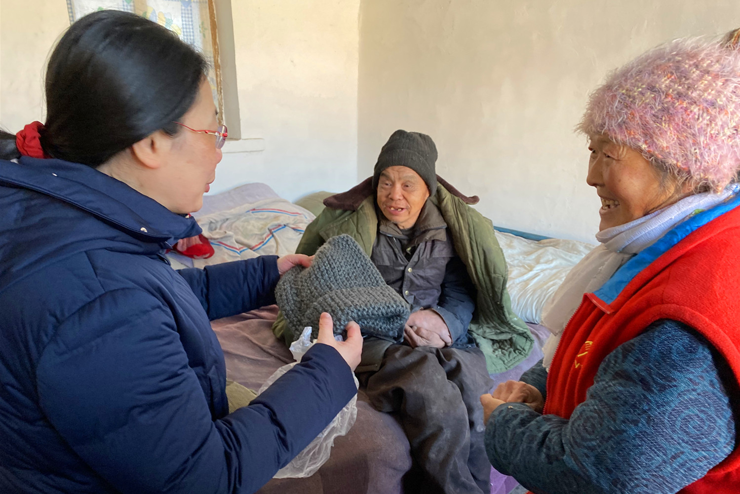 村民冷暖放心頭,寒冬送暖蘊真情。12月21日,離退休黨委書記王紅英帶領(lǐng)退休第十四支部黨員代表,前往房山區(qū)南窖鄉(xiāng)中窖村,向受災(zāi)村民捐贈我校離休干部李育手工編織的帽子100頂,并看望村里的五保戶,為受災(zāi)村民送去溫暖和災(zāi)后重建的祝福。