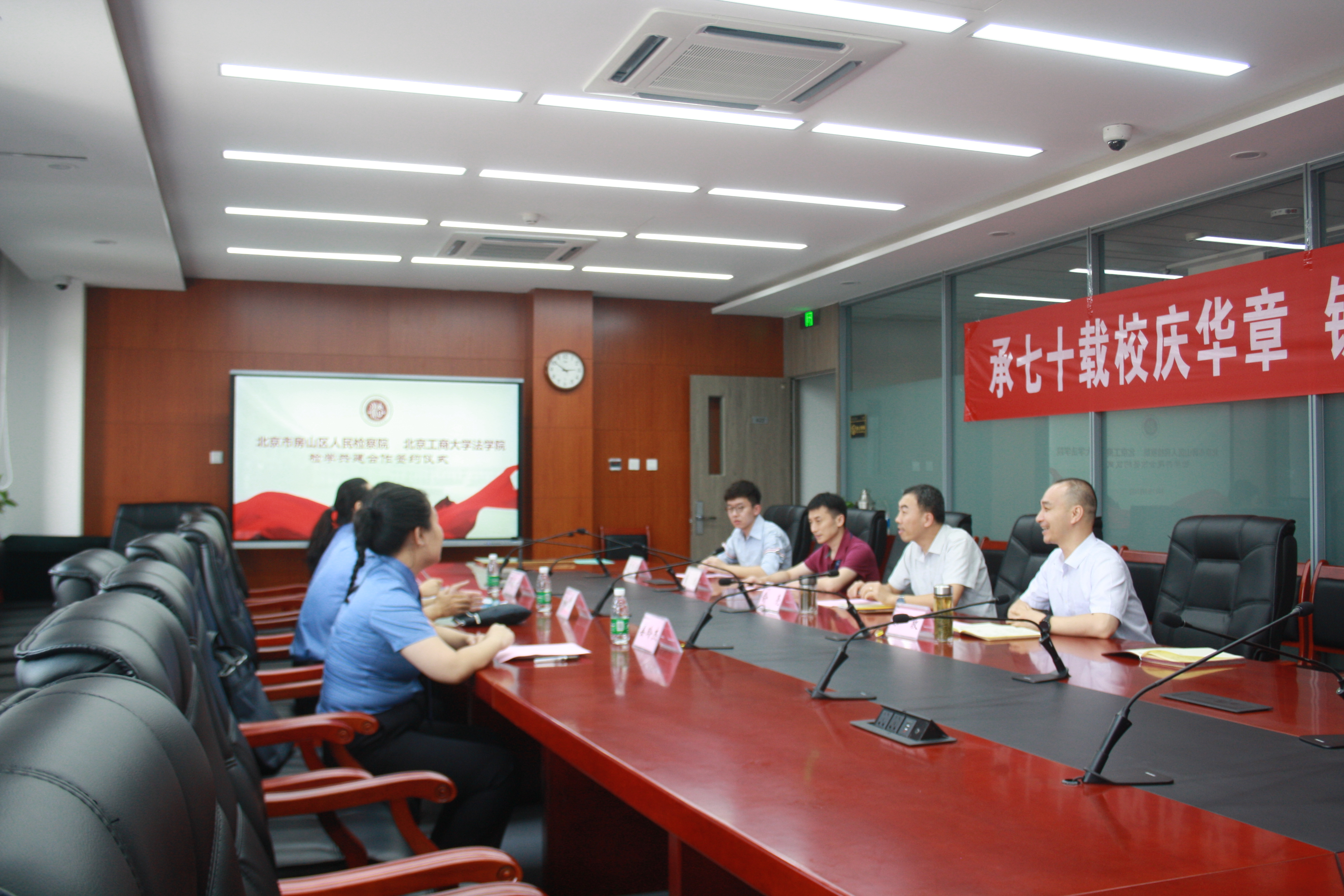 俞亮介紹了學(xué)院發(fā)展歷史與沿革,以及學(xué)院在實(shí)踐教學(xué)和社會服務(wù)等工作方面取得豐碩成果;從服務(wù)首都“四個(gè)中心”建設(shè)的角度出發(fā),闡述了檢學(xué)共建合作的方向,探索未來合作的相關(guān)細(xì)節(jié)。董彪就學(xué)院科學(xué)研究、學(xué)科建設(shè)及研究生培養(yǎng)現(xiàn)狀進(jìn)行說明。