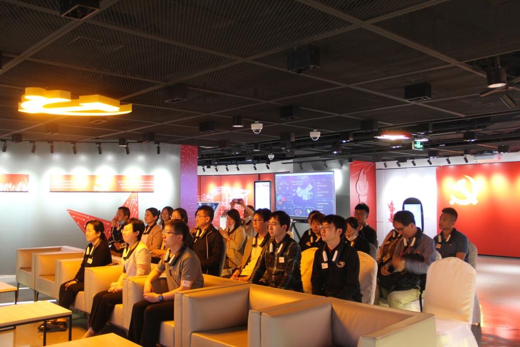 5月19日,在機關黨委書記鄭喜姣的帶領下,來自機關各支部的20余名黨員來到北大科技園總部園區,感受人民網智慧黨建體驗中心帶來的一堂別開生面的黨史教育課。