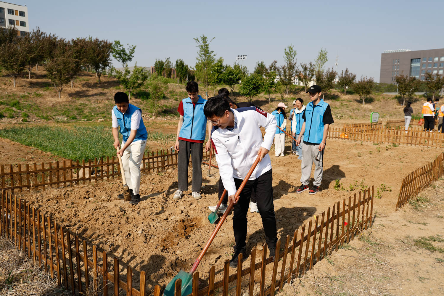 開耕儀式后,在園地實踐老師的帶領下,各學院師生師生分別前往各自園地展開勞作,手持農具翻整土地、澆水覆土,將新一年勞動的種子種在田間,也種在自己的心田。