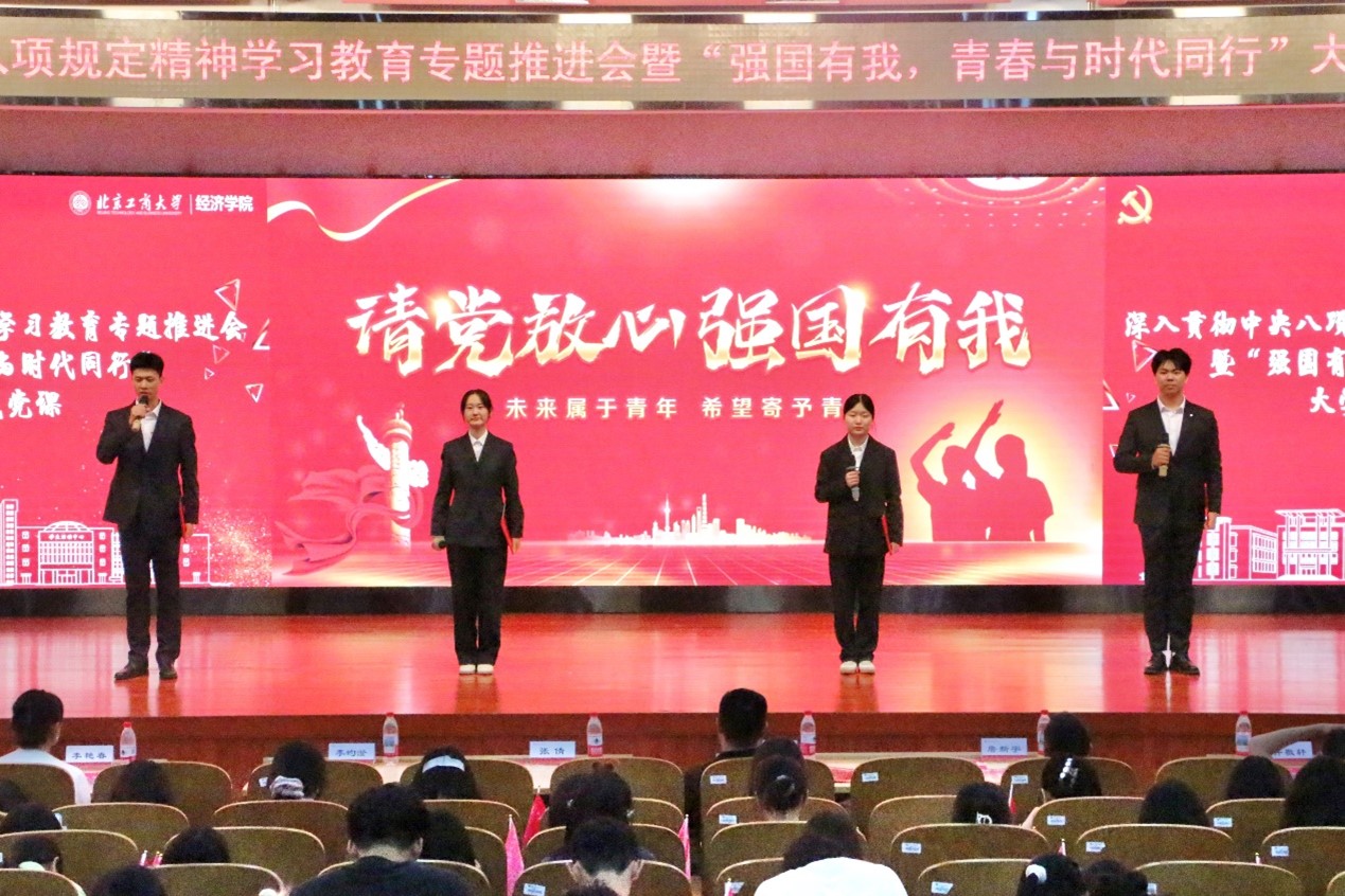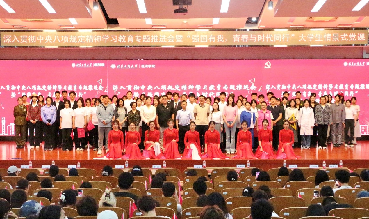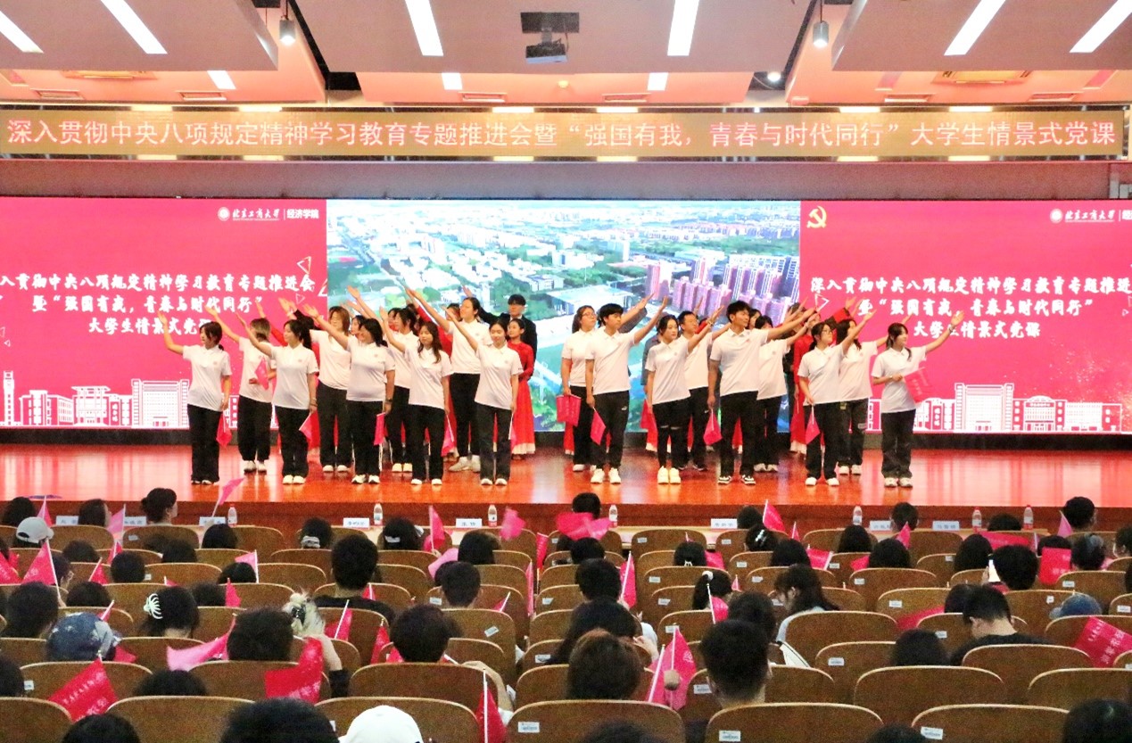 明規(guī)固本,嚴(yán)規(guī)鑄魂。6月4日,經(jīng)濟(jì)學(xué)院在良鄉(xiāng)主校區(qū)舉辦深入貫徹中央八項(xiàng)規(guī)定精神學(xué)習(xí)教育專題推進(jìn)會(huì)暨“強(qiáng)國有我,青春與時(shí)代同行”大學(xué)生情景式黨課,旨在深入學(xué)習(xí)貫徹黨的二十大和二十屆三中全會(huì)精神,落實(shí)中央八項(xiàng)規(guī)定精神,推動(dòng)作風(fēng)建設(shè)走深走實(shí)。情景式黨課作為經(jīng)濟(jì)學(xué)院的黨建特色品牌活動(dòng),通過沉浸式思政教育模式,引領(lǐng)青年學(xué)子在黨性錘煉中厚植家國情懷,在思想淬煉中堅(jiān)定理想信念。