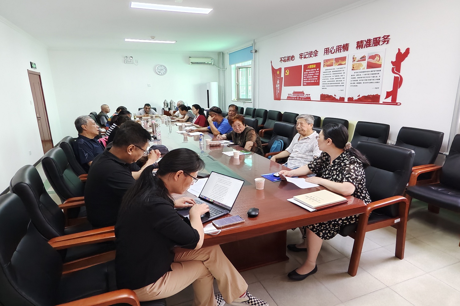 6月14日,離退休黨委理論學習中心組(擴大)專題學習研討會在阜成路西區老干部活動中心召開。旨在深入學習領會文件精神,強化黨紀學習教育,筑牢黨的紀律防線。離退休黨委理論學習中心組成員、離退休工作處處長樊江濤、離退休工作處副處長夏本翠、各離退休黨支部書記參會,會議由離退休黨委書記王紅英主持。