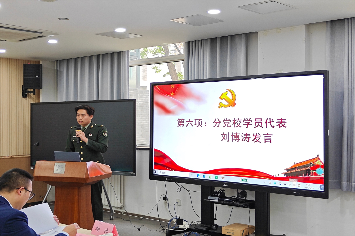 分黨校兼職輔導員代表王龍廣作為輔導員代表發言,他表示將全力以赴,引導學員們樹立正確的世界觀、人生觀和價值觀。入黨積極分子培訓是提高政治覺悟、黨性修養的重要途徑,希望大家在學習中深入理解黨的性質、宗旨和任務,端正入黨動機,真正做到組織上和思想上入黨的統一。他還提醒大家要認真學習黨的理論知識,特別是關注黨內重大活動,深刻領會全國“兩會”會議精神,將其內化于心、外化于行。學員代表產設221班劉博濤在發言中分享了自己的軍旅經歷和對黨的深厚感情。他表示,作為一名退伍軍人,他深刻理解到黨的領導和中國特色社會主義制度的優越性。他承諾將珍惜這次學習機會,認真學習黨的理論知識,不斷提高自己的政治素養,爭取早日成為一名合格的共產黨員。他還代表全體學員表達了對學院黨委的感謝,并承諾將嚴格遵守培訓班的紀律,積極參與各項活動,爭取以優異的成績完成培訓。