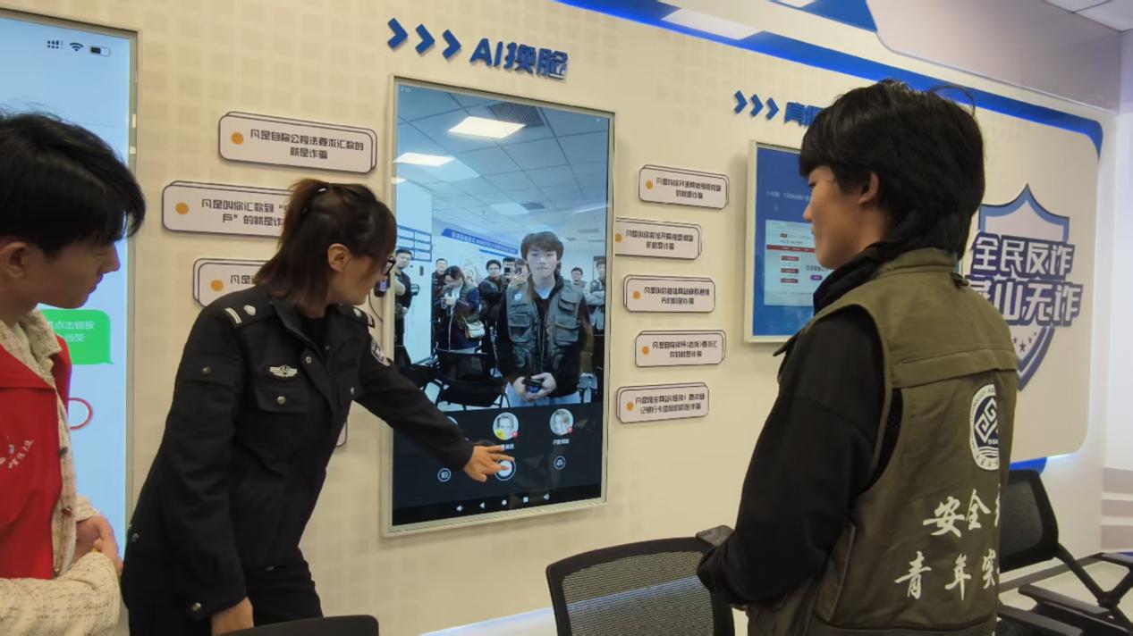 在燕山應(yīng)急安全實(shí)訓(xùn)體驗(yàn)中心,講解員通過多臺(tái)智能交互屏,為同學(xué)們詳細(xì)演示并揭秘電詐分子如何通過短信鏈接、AI換臉、釣魚網(wǎng)站、變聲電話、號(hào)碼變換等高技術(shù)手段實(shí)施詐騙的詳細(xì)過程。講解過后,同學(xué)們紛紛變身“施騙者”,現(xiàn)場通過操作設(shè)備體驗(yàn)電詐過程,切身體會(huì)到高科技詐騙手段令人防不勝防。