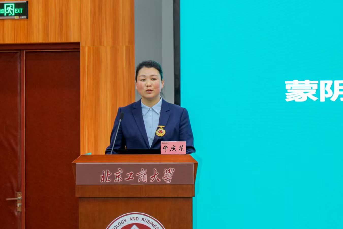 全國勞動模范、2022年冬奧會火炬手、山東省第十四屆人大代表,來自沂蒙紅色老區的牛慶花為同學們分享了自己的創業之路。從留守婦女到網店年營業額達400多萬元的新農商,她敢于嘗試,勇于堅持,致富不忘鄉恩,帶動身邊貧困群眾脫貧致富。被父老鄉親們稱為綻放在山村里的“電商玫瑰”。